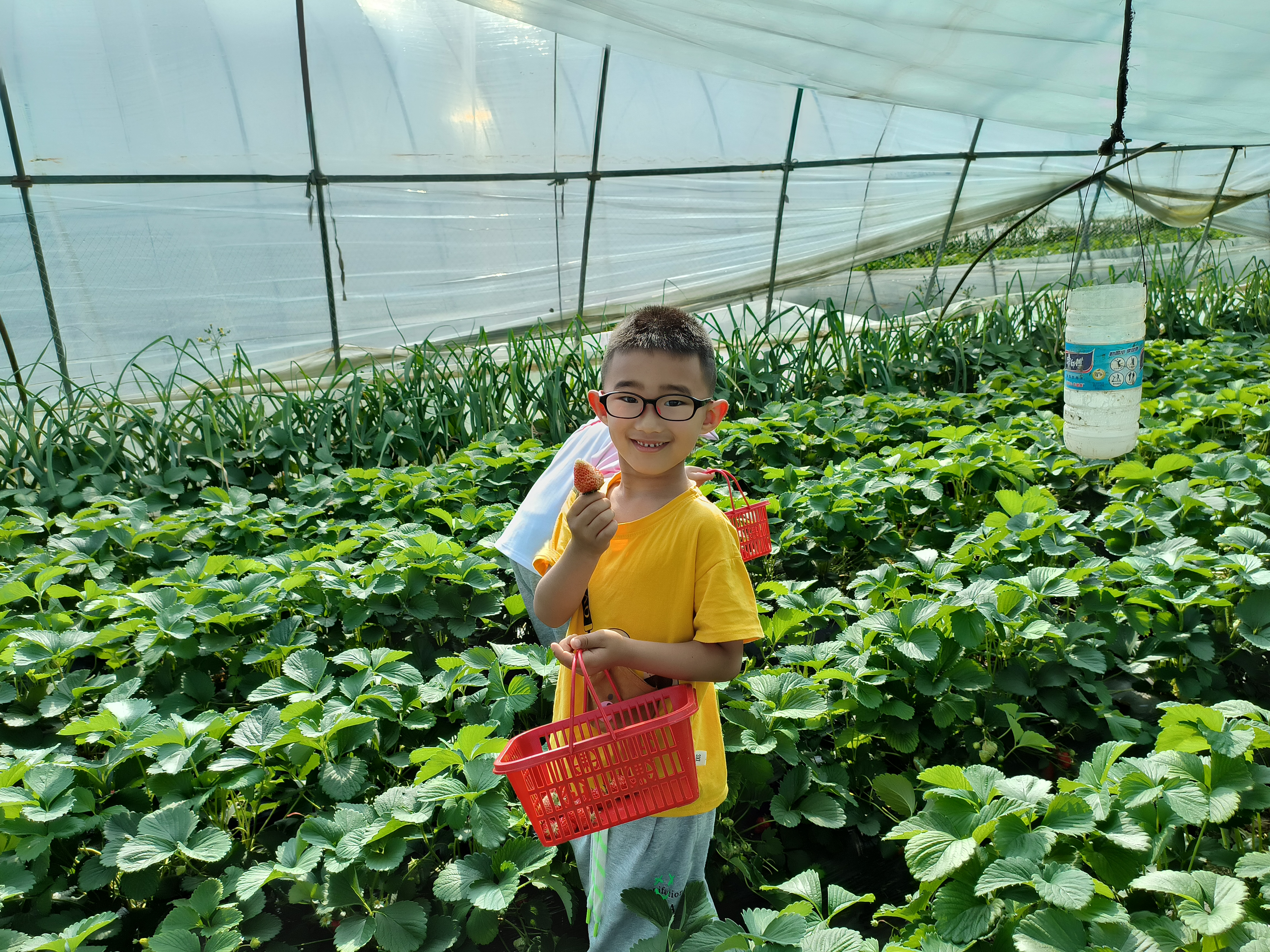 草莓棚外,工作人员通过现场互动讲解,向孩子们介绍了草莓的种植技术,生长和繁殖过程,示范了草莓采摘方式和相关注意事项。大家认真听完后便挎着篮子迫不及待地奔入大棚,阵阵草莓果香伴随着泥土的清新扑面而来。田垄上一颗颗红的、青的、大的、小的草莓,或是大喇喇地坠在藤上呼喊着快来摘“自己”,或者隐藏在茂盛的叶片中,且等着孩子们和家长的细心寻找。