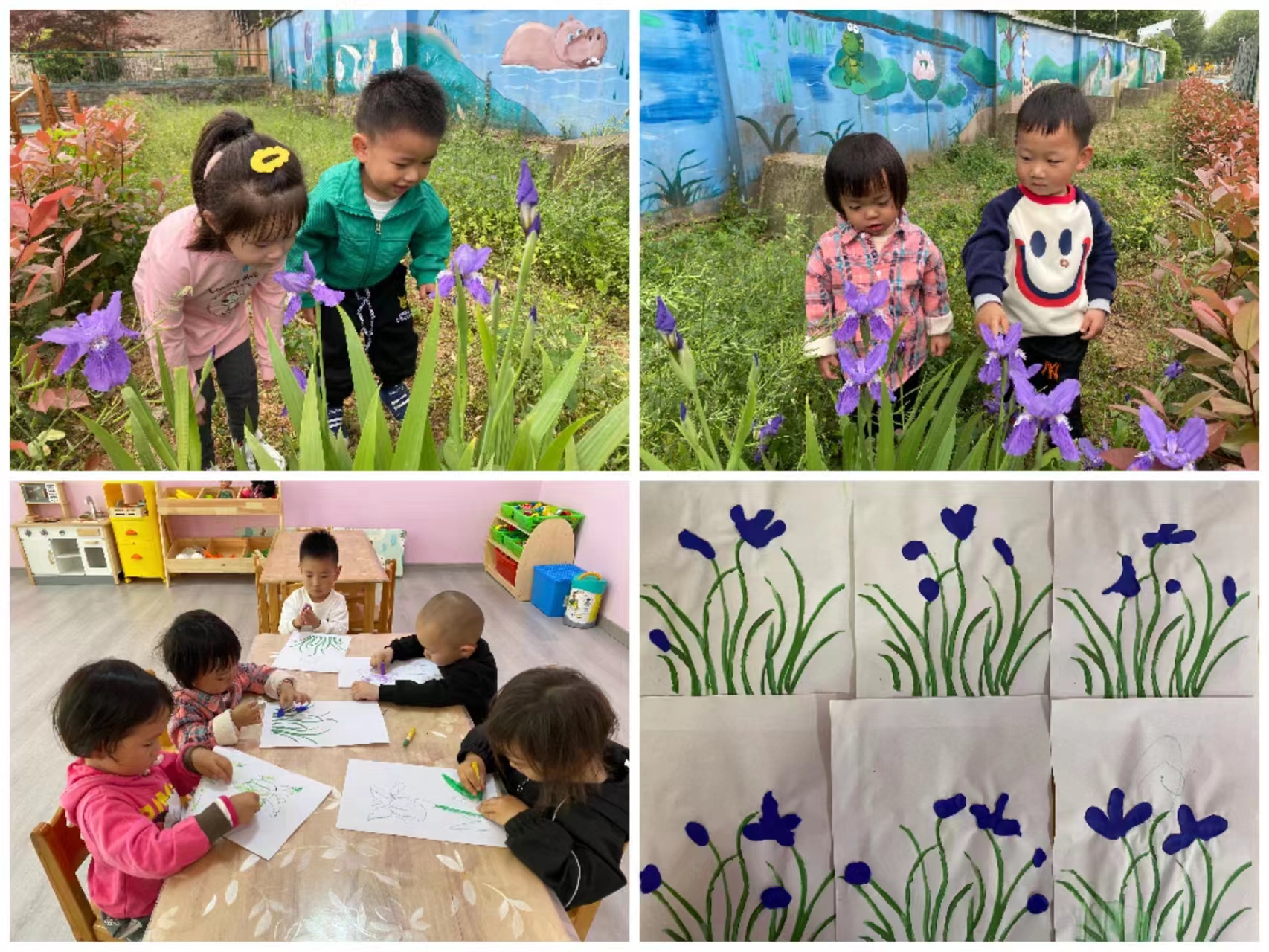 五月,鸢尾花开得正盛,阳光照耀下显得格外鲜艳,犹如一只只翩翩起舞的蝴蝶。微风拂过,紫色“波浪”轻轻摇曳,美不胜收。孩子们仔细地观察花瓣的颜色,还有叶子的形状,并选择自己喜爱的方式记录植物,有的为鸢尾花的线描图添上颜色,有的用超轻黏土在有叶子的图中添上鸢尾花,在志愿者老师的带领下,大家一同体会生命成长的可贵。最后,大家开心地展示作品,分享喜悦。