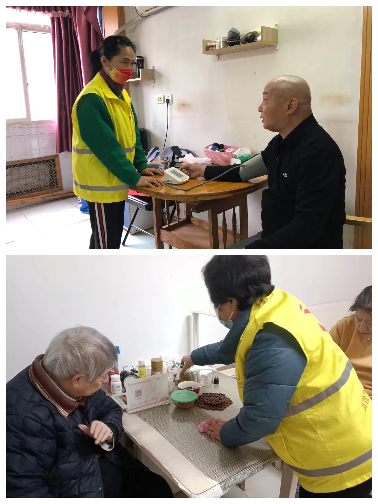 在老人家中,时间银行志愿者耐心为老人测量血压,按摩身体,打扫卫生,关心老人的生活状况和身体情况,同时详细了解他们在健康、医疗等方面的实际困难和需求,宣传扶助惠民政策,便于后期为其提供精准服务。退休老党员志愿者的暖心叮嘱也让老人十分感动,“志愿者总是特别关心我们这些独居老人,时不时就过来看下我们的情况,有他们在,我放心多了!”老人高兴地表示。
