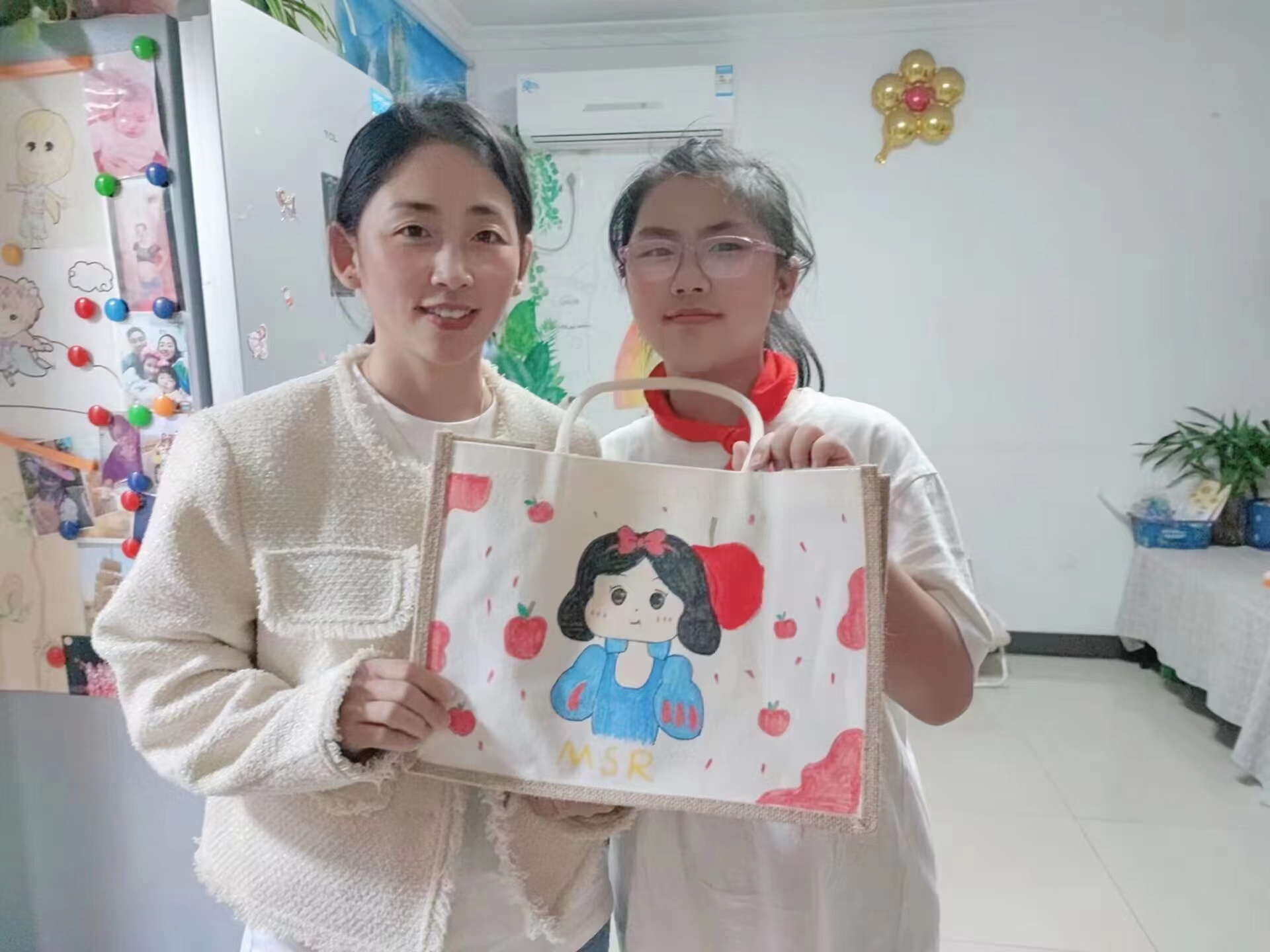 活动中,首先由社区教育志愿者为孩子们介绍了母亲节的由来和习俗,教育孩子们要怀着感恩之心去体谅父母,学会照顾、孝敬父母。紧接着志愿者们为每位孩子分发了纯色的布包,并提供绘画专用颜料、画笔等,让孩子在布包上展开丰富的想象,画出妈妈平时喜欢的东西和自己心目中的妈妈。在笔画间,在色彩里,孩子们沉浸其中,认真绘画、发挥想象。经过一个小时的创作,一个个漂亮精致的母亲节帆布包展现在眼前。回家后,孩子们将带有自己画作的帆布包送给妈妈,感谢妈妈的养育之恩,并向妈妈说一句:“您辛苦了,我爱你!”孩子们用彩色画笔为自己的妈妈送上了一份爱的祝福。