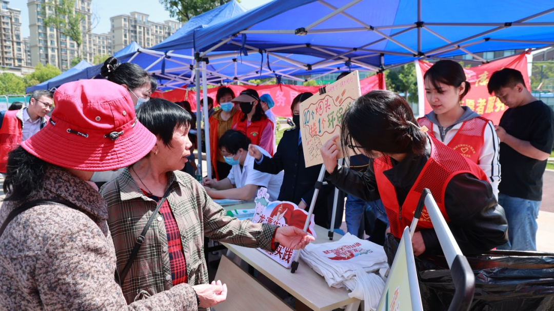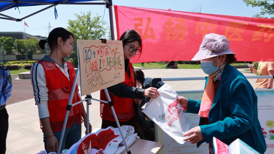 “各位居民朋友,烟头换礼品,10个烟头换1个环保购物袋……”在新时代文明实践所志愿者的“吆喝”下,展台前围满了群众。