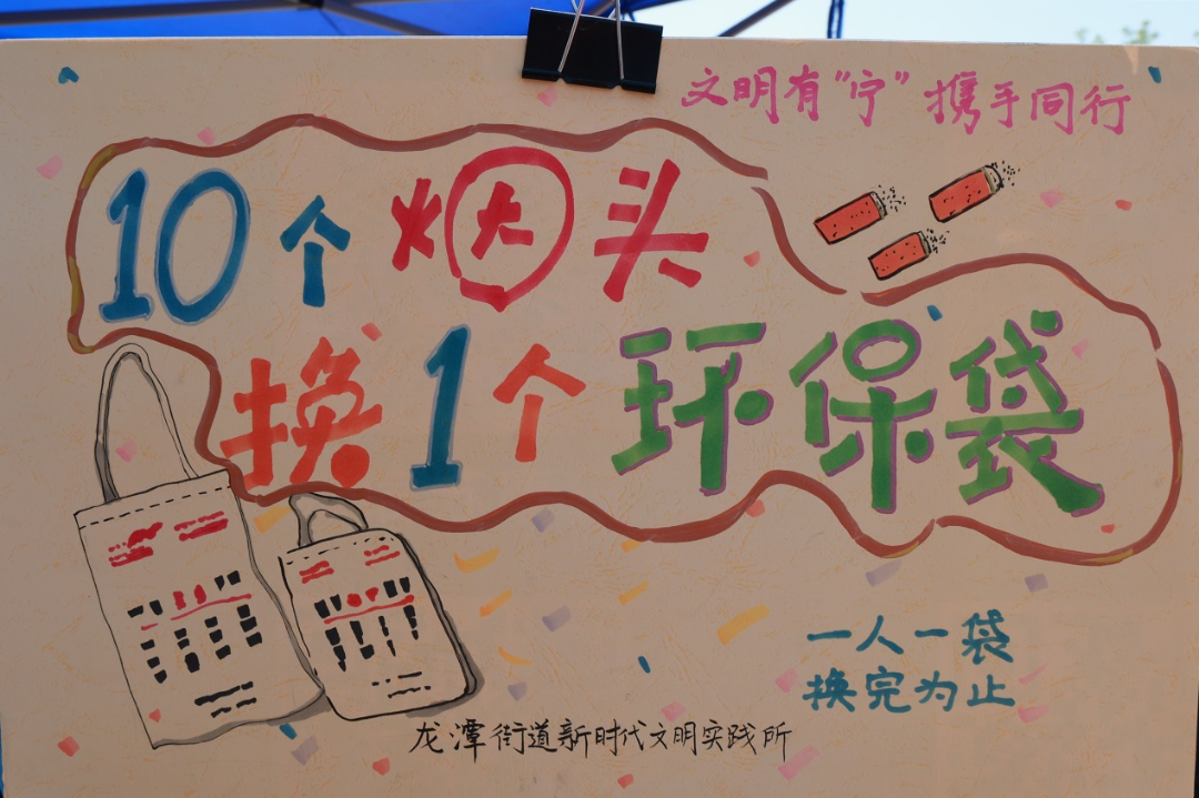 文明有“宁”,携手同行。为进一步提升城市颜值,营造健康、文明、整洁的生活环境,5月9日上午,由龙潭街道新时代文明实践所、龙潭街道社区教育中心联合主办的“小烟头”兑换“大文明”实践活动在龙岸花园广场火热展开。