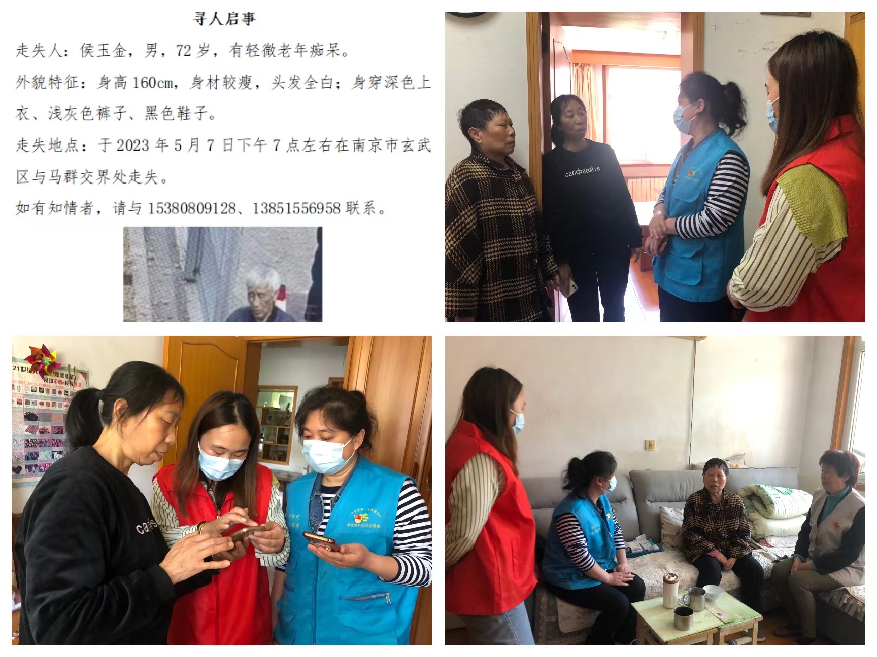 近日,栖化新村社区接到辖区居民的求助电话,家里一位72岁的老人患有轻微老年痴呆,在5月7日下午19:00左右走失。社区工作人员第一时间赶到走失老人家中对家属进行安慰并沟通,询问老人信息、身穿服装颜色、有无疾病史等重要信息。随后立即联系区民政工作人员通过掌上云社区全区推送“寻人启事”,“寻人启事”很快在微信群、朋友圈传开,志愿者们广泛张贴寻人启事,向路人商户打听询问并提醒如遇到此老人第一时间与社区联系,志愿者们认真收集四面八方汇聚而来的线索。同时,社区工作人员全程陪伴家属,尽力抚慰家属情绪,让他们仔细回忆老人平时常去的地点和他的生活习惯。
