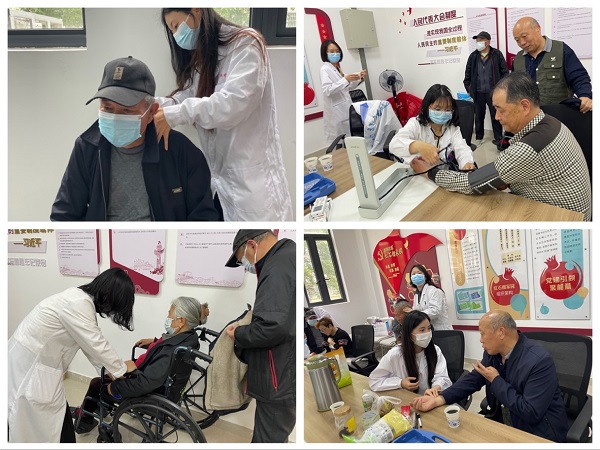 来自南京中医药大学第一临床医学院的青年志愿者们结合所学为老党员进行义诊,项目包括量血压、推拿、常见病、慢性病的咨询,普及医学常识和健康知识等,弘扬了“绿色、健康、保健”的生活理念,帮助大家提高身体健康认知。
