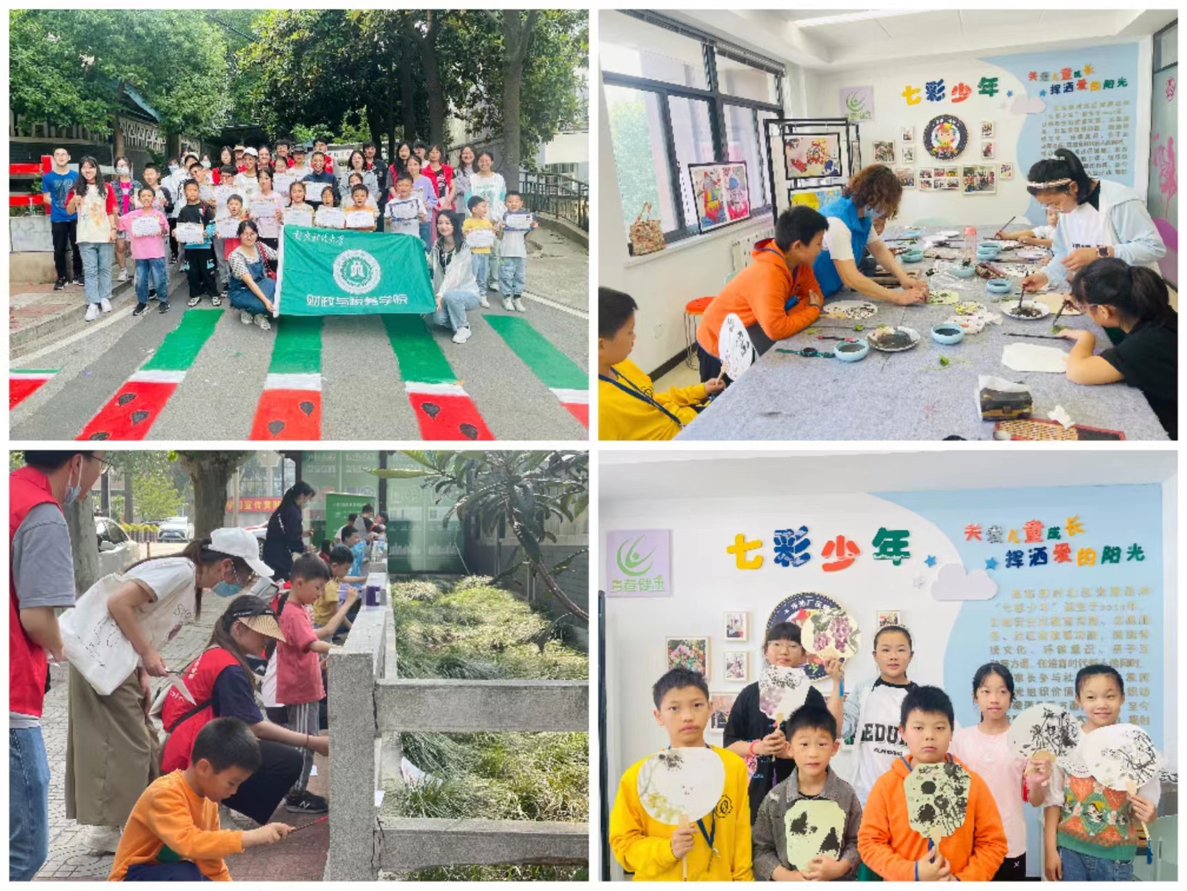 “在书法的花园里画呀画呀画,用笔墨的种子开文化的花”,5月13日南炼新村社区居民学校、社区新时代文明实践站联合“七彩少年”品牌项目,以“画纸扇”为主题,通过个性创造,引导青少年完成纸扇创作。活动伊始,授课老师声情并茂地介绍扇文化的起源、制作工艺和对绘画扇面的技巧。绘画过程中,学生们各显身手,专注于个性DIY创作,认真勾勒专心渲染。扇子虽小,却折射出丰富的传统文化,扇面上所描绘的更是青少年对生活的憧憬和幸福的体现。随后,南京财经大学财政与税务学院的志愿者们,带领学生们手持画笔和颜料,在花坛的围栏和斑马线上进行创作,同学们纷纷表示,创作的过程不仅让自己感受到了中国传统文化的独特魅力,还锻炼了自己的动手能力和想象力。
