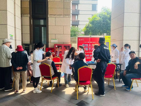 5月13日上午,广志路社区联合南京中医药大学的志愿者们走进了万达茂商业体和高科荣境小区,同步开展活动,为居民们提供了两场别开生面的义诊服务。这次活动的主要目的是关爱居民健康,让大家在家门口就能享受到优质的医疗服务。