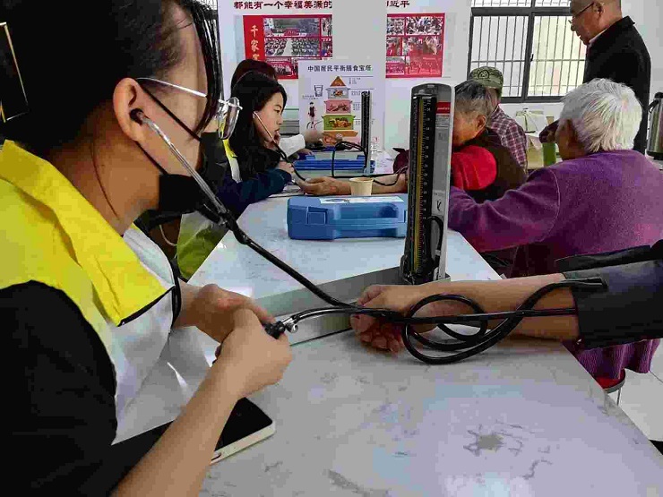 活动现场,南中医的大学生来到我们仙林新村小区,在南区家庭医生服务站免费给仙林新村小区居民量血压、泡养生茶、简单舒筋按摩等项目服务,耐心询问居民身体状况,解答居民的各种疾病问题,对其健康症状进行相关的讲解并给予饮食建议,让他们及时了解自己的身体状况及相关疾病的预防。现场还有学生教小区老人打太极。