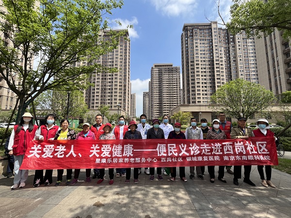 为了增强西岗社区辖区老年人的健康意识,宣传普及老年健康知识,切实提高辖区老年人的健康素养和健康水平,营造有利于老年人健康生活的社会氛围。2023年5月19日,西岗社区新时代文明实践站发挥链接资源的优势,积极整合星康乐居家养老服务中心、银城康复医院、南京东南眼科医院等医疗机构的资源,在西岗社区开展“便民义诊”进社区志愿活动。