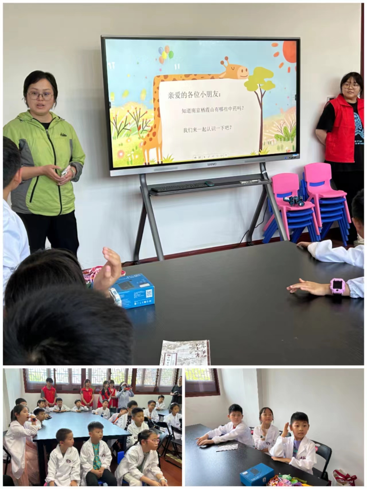 课堂上,中医药专业教师结合栖霞山地域文化,给孩子们上了一堂生动的中草药文化知识课,帮助孩子们认识到身边就有许多常见的药材,家庭常用的一些食材也具有一定的药用价值,让大家了解到自古以来,栖霞山中草药资源在南京乃至华东地区久负盛名,历史上的中草药名家葛玄、葛洪、陶弘景、李时珍都曾到栖霞山采集药材。孩子们听得津津有味,还不时刨根问底,课堂互动积极。