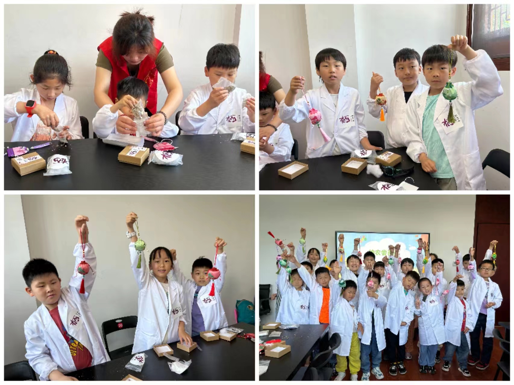 随后,孩子们动手制作起中草药小香囊。你看,孩子都认真啊!小心翼翼地把草药放进药袋里,再放进漂亮的香包中扎紧,一个驱蚊虫的香囊就做好了。孩子们举起自制的精致小巧、散发着阵阵药香的香袋小香囊,别提多高兴呢!