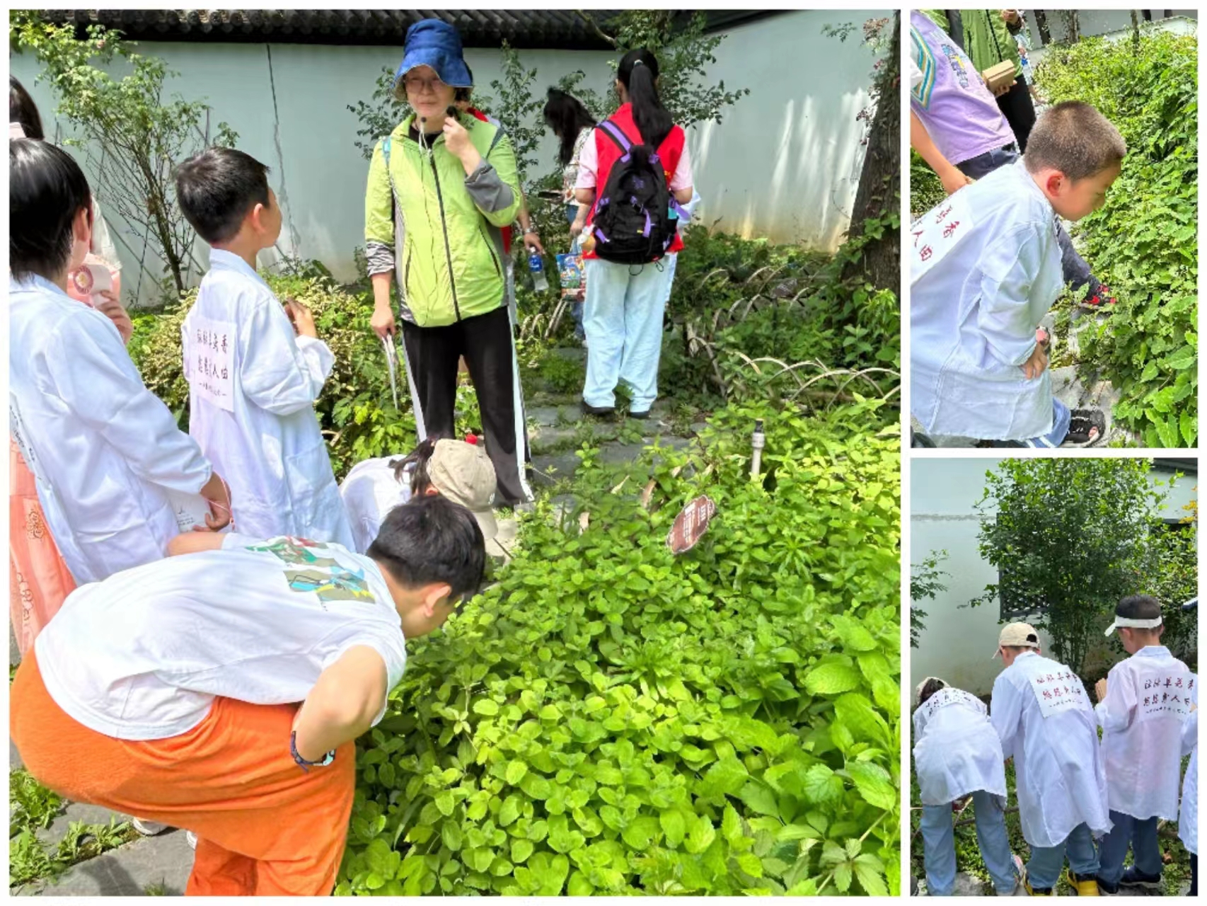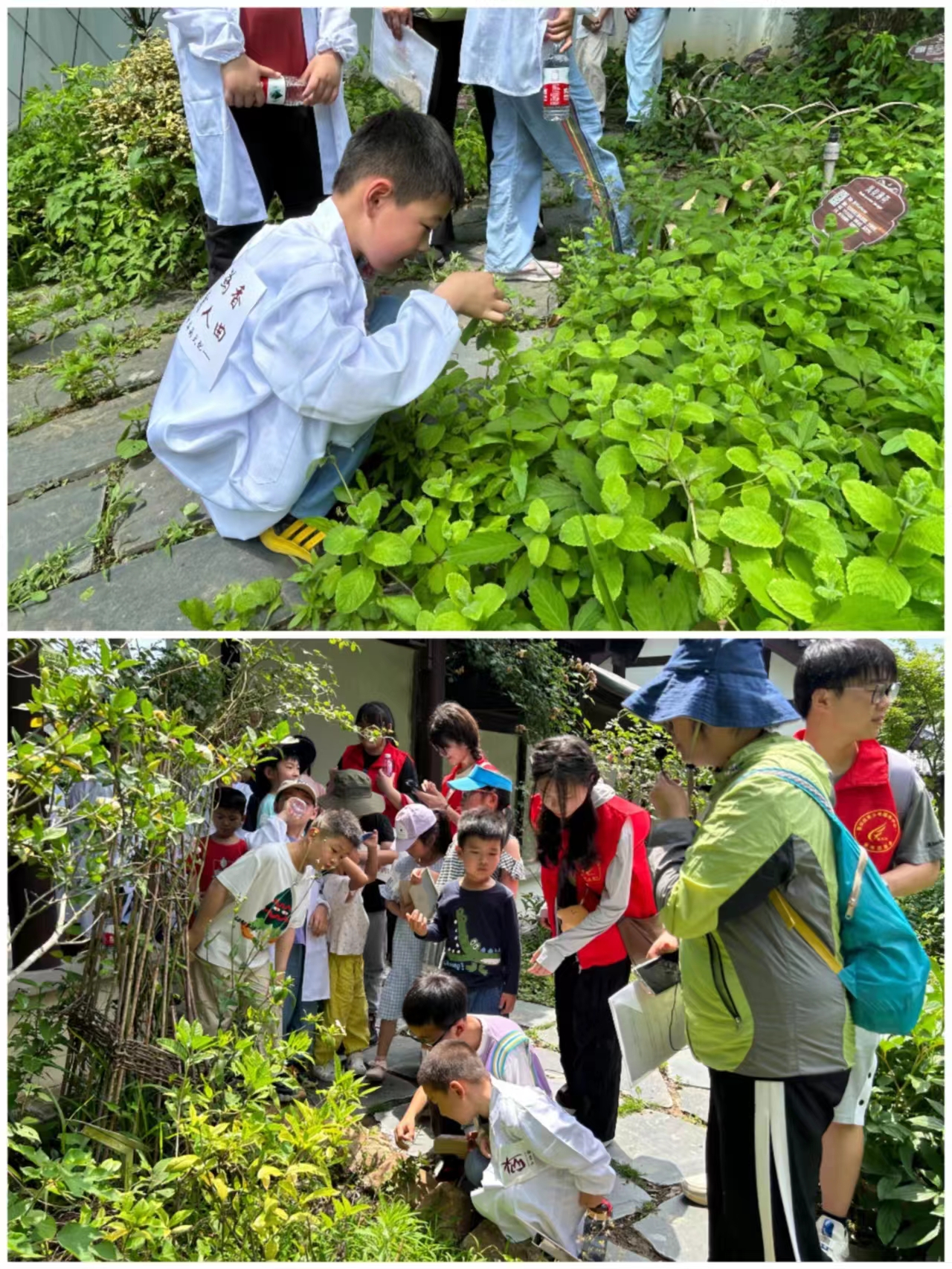 走出课堂,孩子们乘车来到位于龙山半山腰的半馆——栖霞山中草药文化园,对身边的中草药进行沉浸式体验。园内既有一些常见的草本,如薄荷、迷迭香、前胡、艾草、药用蒲公英等,又有一些不太常见的中草药植物,如太子参、明党参、丹参、灵芝、白术、石斛等……