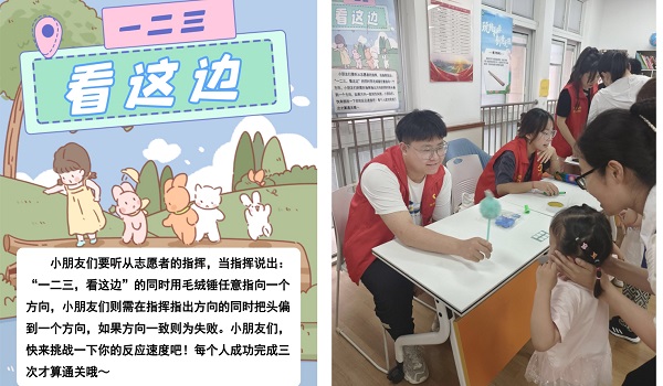 活动重播:小朋友刚开始充满了好奇与迟疑,渐渐地,小朋友掌握了游戏的规则,很开心地和志愿者哥哥姐姐们玩起了游戏。