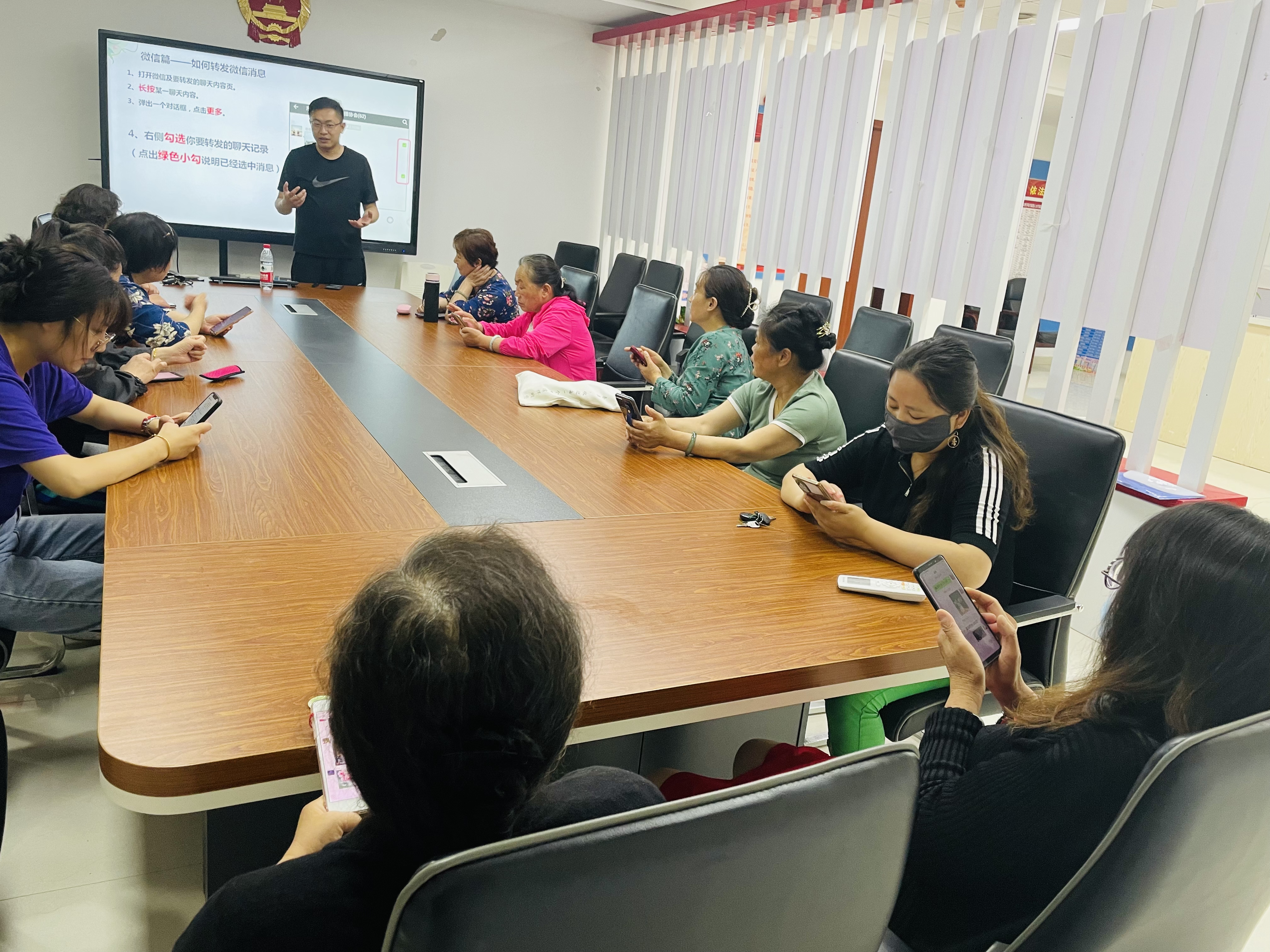 课程伊始,老师先和学员们从理财、交通、医疗、水电费等方面介绍了智能手机为生活带来的方便,并与学员们做了沟通交流;之后老师正式进行了智能手机功能教学,采用PPT讲解理论+介绍技巧+实操指导相结合的方式,通过微信篇、支付宝篇、基础篇、注意事项四个篇章的内容讲授与分享,跟现场学员们普及了如何简便建微信群、主页设置、朋友圈、视频号、微信支付以及支付宝、手机基础设置等功能。学员们学习热情高涨,认真地跟随老师进行学习,掌握较快的学员热心地帮助身边的学员,现场充满了互帮互助的良好氛围。
