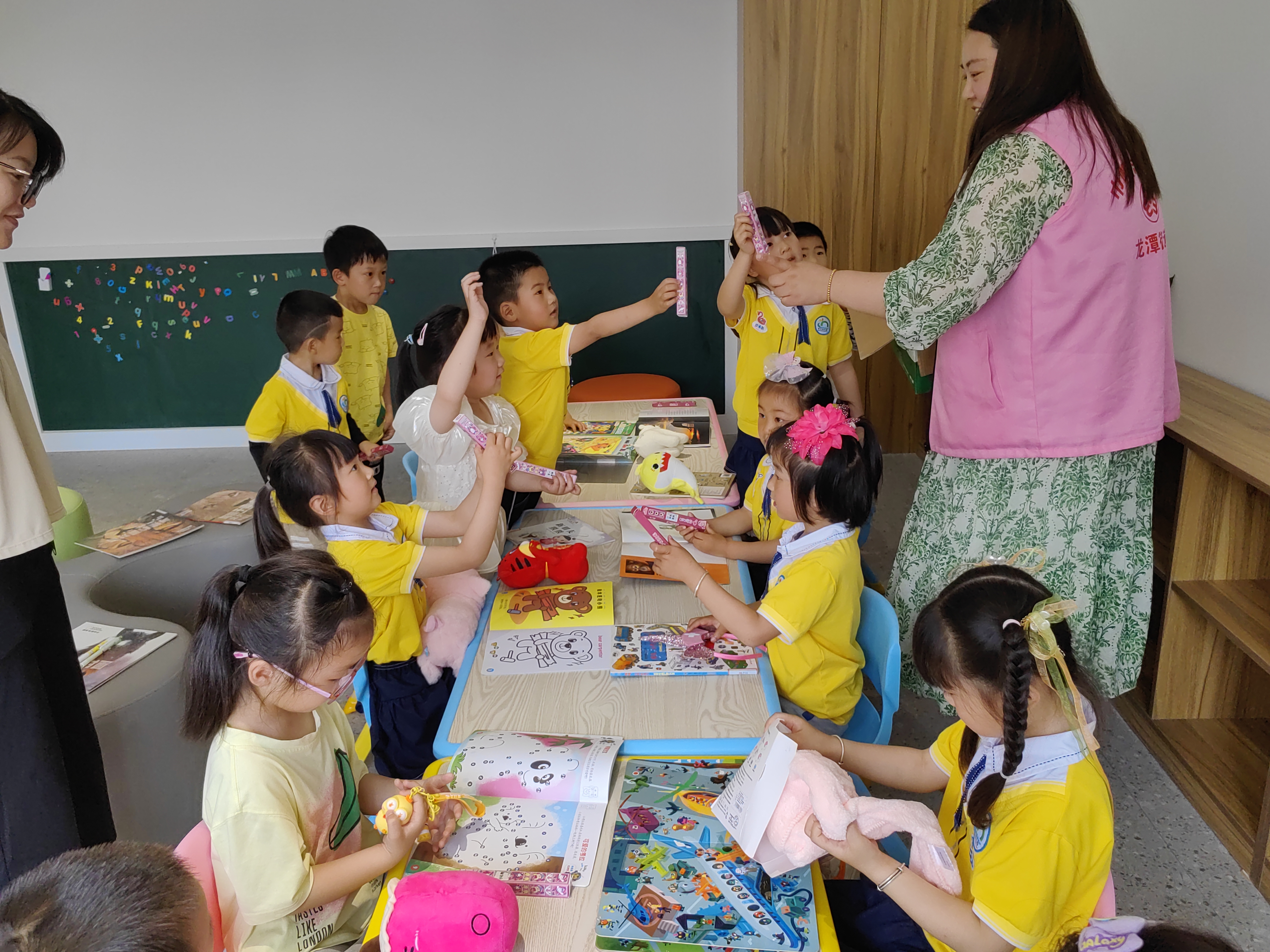 同时,喜欢阅读的孩子们来到妇儿之家活动室,孩子们围坐一圈,挑选喜欢的绘本阅读起来。在书籍中,还隐藏了小惊喜在书中有“宝藏”,找到“宝藏”贴纸的孩子可以向志愿者换取一个小礼物。巾帼志愿者还给孩子们讲述了《周恩来穿织补的衣服见外宾》的红色家风故事,让孩子们从老一辈革命者的红色家风故事中,学习他们艰苦朴素、为国奉献的优良作风,致敬革命先烈。