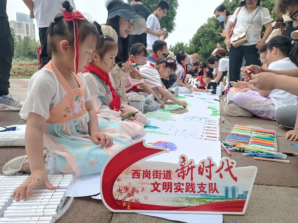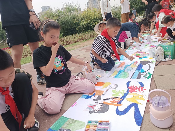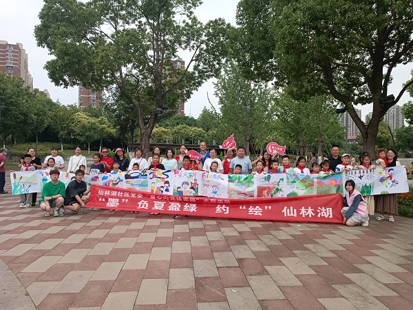 红心代代传,妙笔颂祖国。为丰富辖区儿童文化生活,激发爱国热情,6月3日,仙林湖社区党委联合南京工业技术大学艺术传媒学院一同开展了“′墨'负夏盈绿,约'绘'仙林湖”亲子绘画活动,让儿童以画笔为媒,凝聚团结奋进力量,绘就焕发新时代少年精神的画卷。
