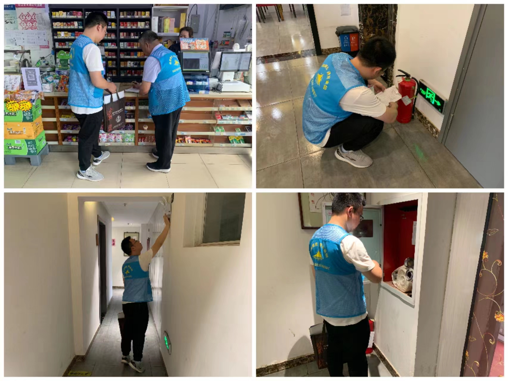 检查过程中,工作人员对消防器材配备、疏散通道畅通、漏电保护装置通等进行了详细检查,同时向商户讲解灭火器使用方法以及其他安全知识。