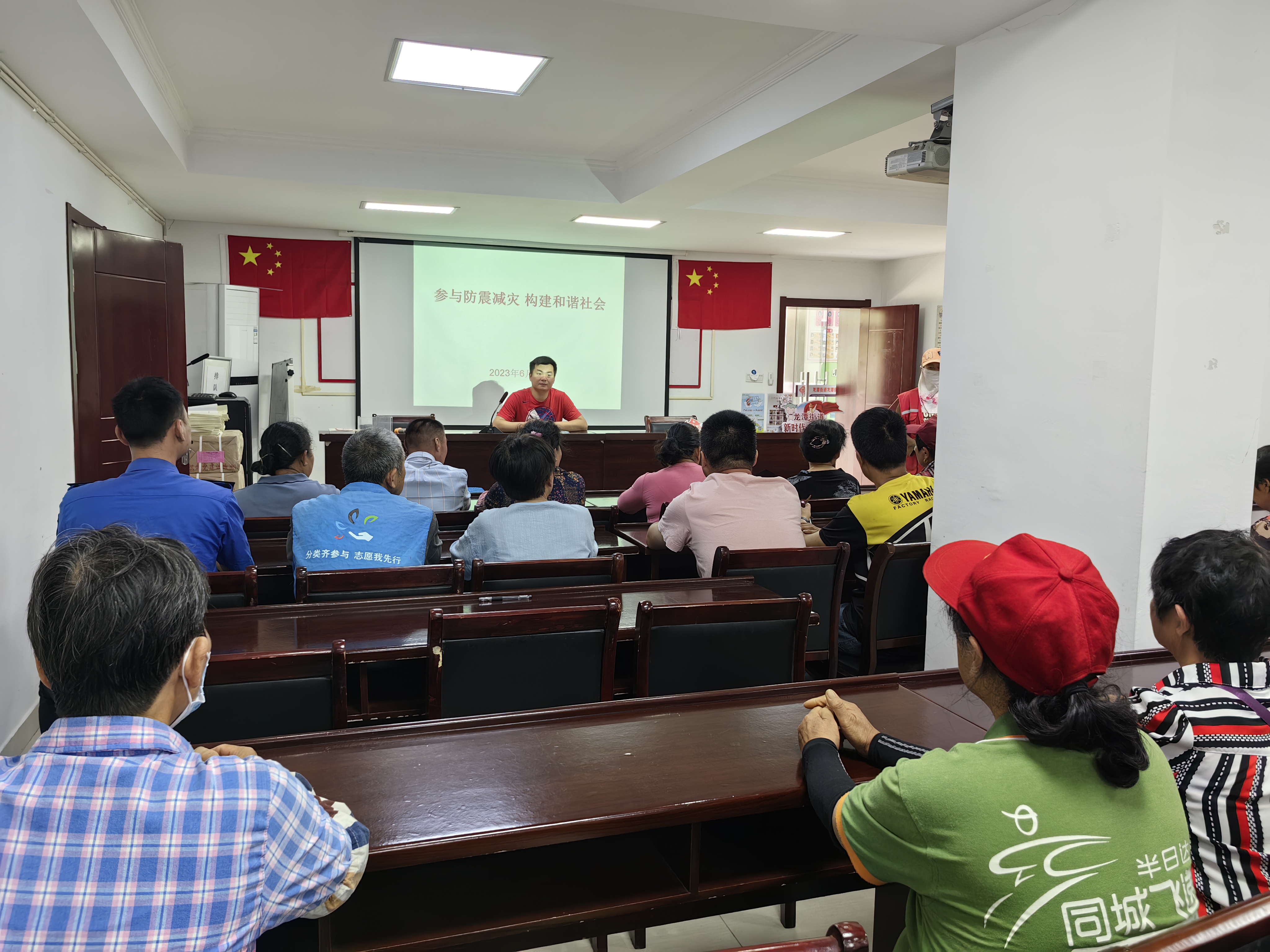 为深入提高辖区居民防震减灾安全意识,增强居民防震减灾自救能力,6月14日上午,龙潭街社区教育学校在辖区内组织部分居民开展关于“参与防震减灾 构建和谐社会”科普知识讲座。