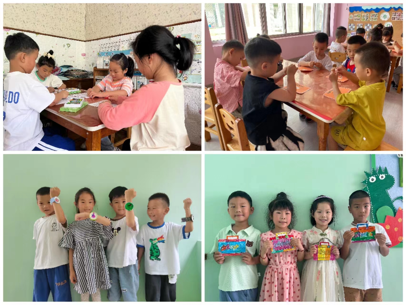 首先,老师播放了《我眼中的爸爸》故事视频及“我的爸爸”组图,引导孩子们了解父亲节的时间和含义,感知不同孩子眼中父亲的不同形象。然后,老师鼓励大家说说自己眼中的爸爸,孩子们与同伴相互交流自己的想法,进一步感受爸爸对自己的爱。接着,孩子们在志愿者的帮助下,发挥想象,尝试用彩笔勾勒绘画及手工制作父亲节礼物的方式,大胆表达对“超级英雄”的爱和感谢。有的孩子选用水彩笔线条和黏土装饰做成了“手表”,有的孩子运用图画纸及油画棒做成了“爱心领带”,还有的孩子用卡纸、装饰胶带做成了《惊喜刮刮卡》送给爸爸。最后,大家互相比较分享制作好的礼物,并听取其他同学的创意和赞扬,孩子们在创作中更加的自信和勇敢。