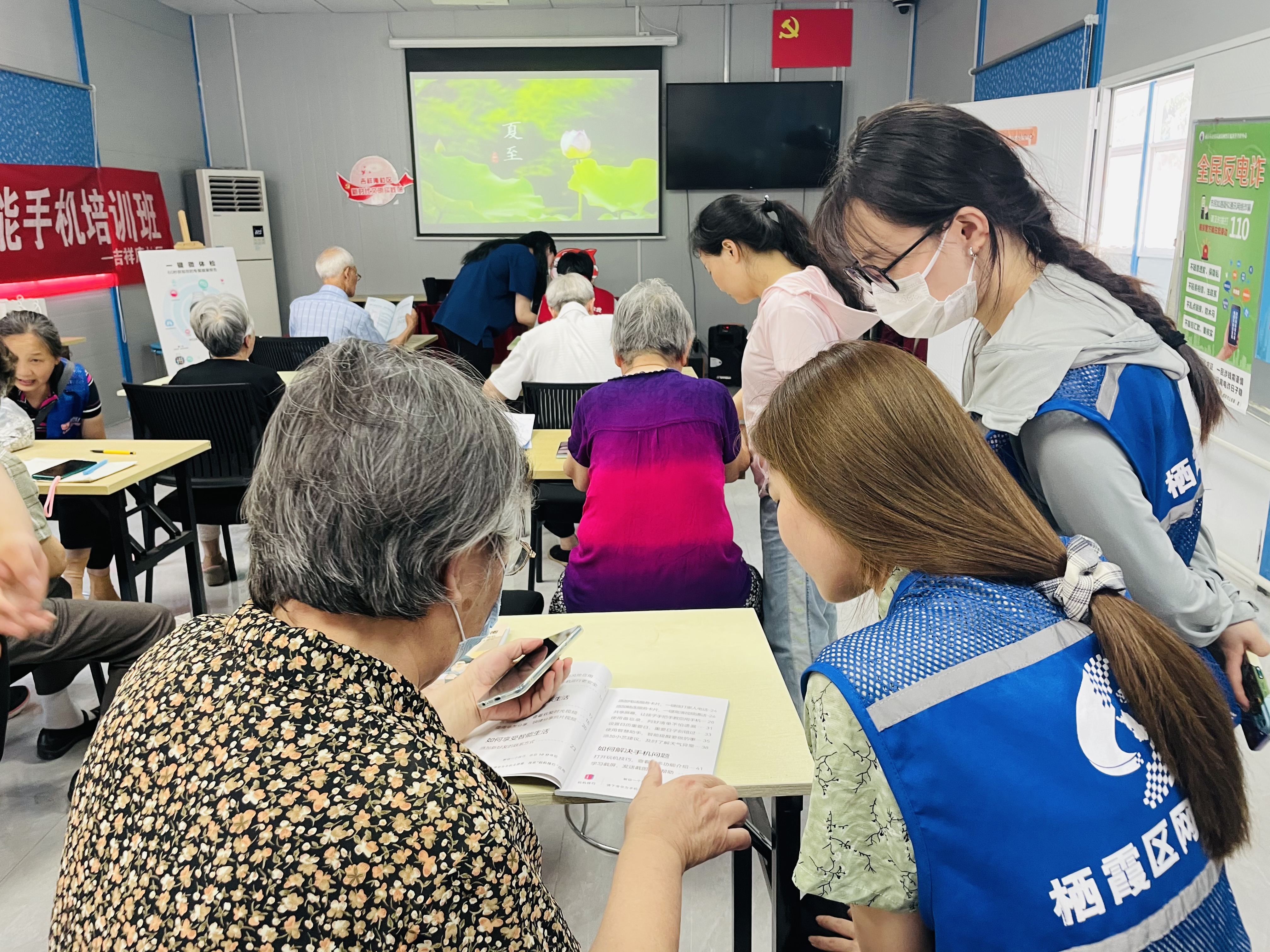 在夏至节气到来之际,为帮助辖区老年人解决“用机难”的问题,尤其是老年人在手机付款、预约挂号时遇到的智能技术运用困难,积极探索线上线下相结合的教学模式,让更多老年人体验,通过智能手机、平板等设备,上直播和录播课,更方便更多渠道学习各类知识。