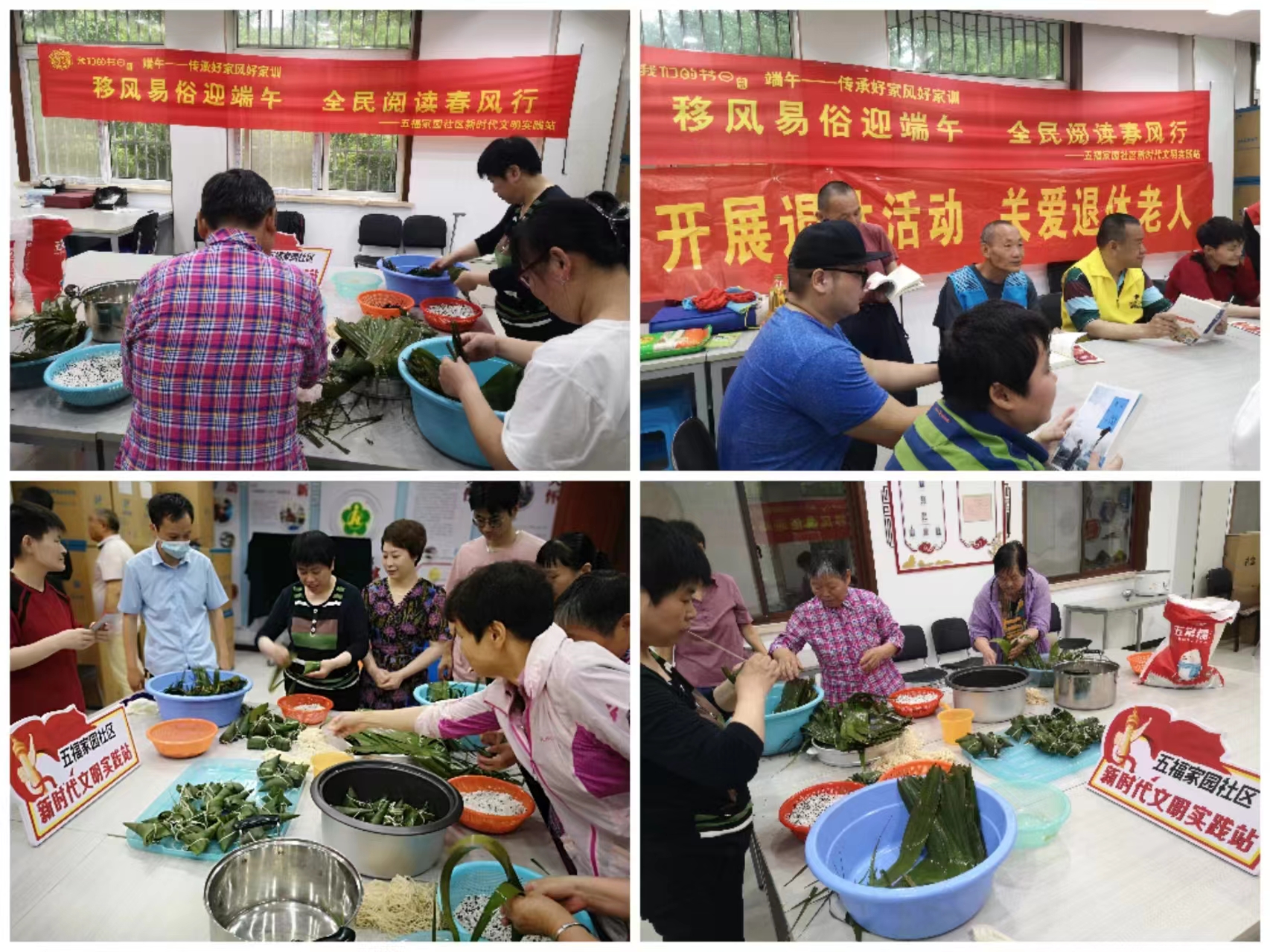 近日,栖霞街道五福家园社区红十字博爱家园、社区关工委、社区居民学校等组织社区居民开展“移风易俗迎端午 全民阅读春风行”主题活动,迎接我们的节日“端午节”,营造浓厚民俗节日氛围,丰富群众精神文化生活,让居民们感受中华民族传统节日文化的魅力。