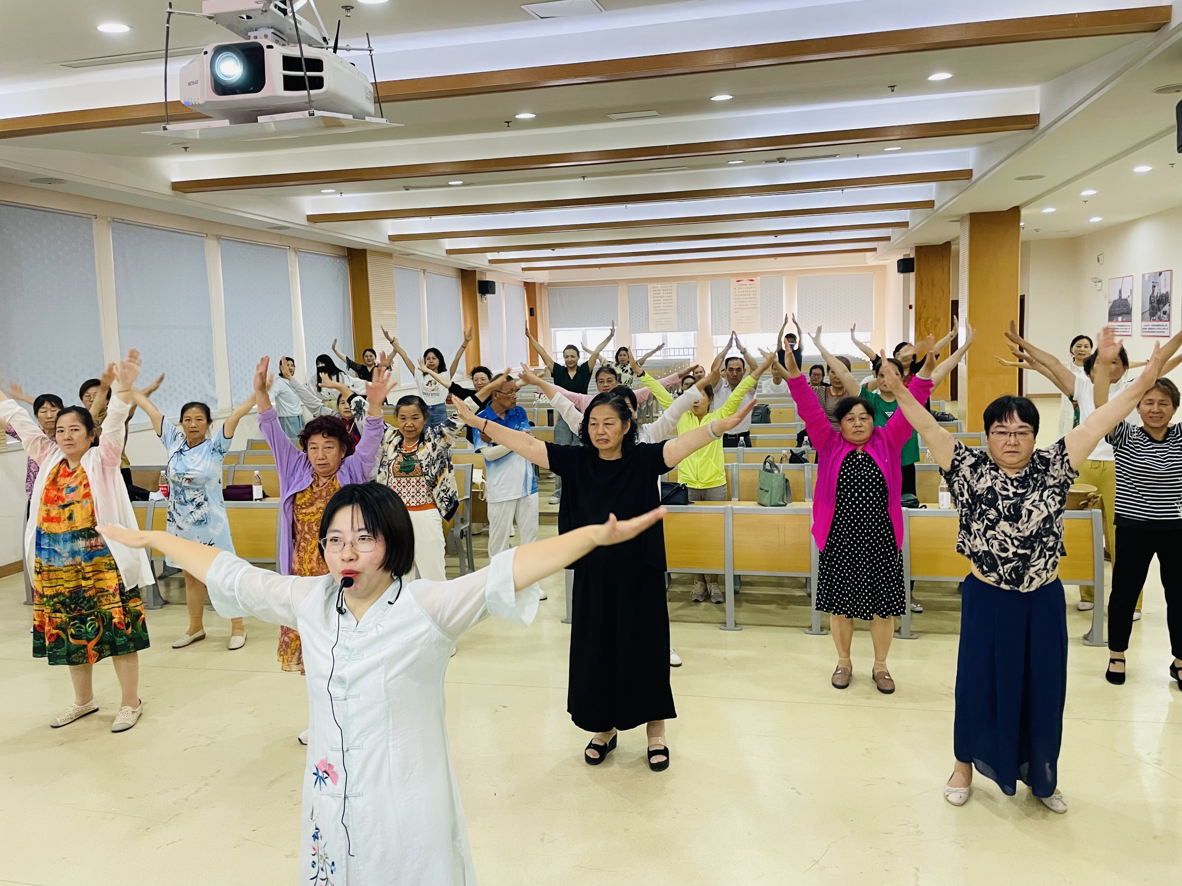 随后,老师带大家了解身体穴位知识,并带大家一起跳“经络操”舒展筋骨、通气血、强肺气、理肝气、升阳气、去淤堵。