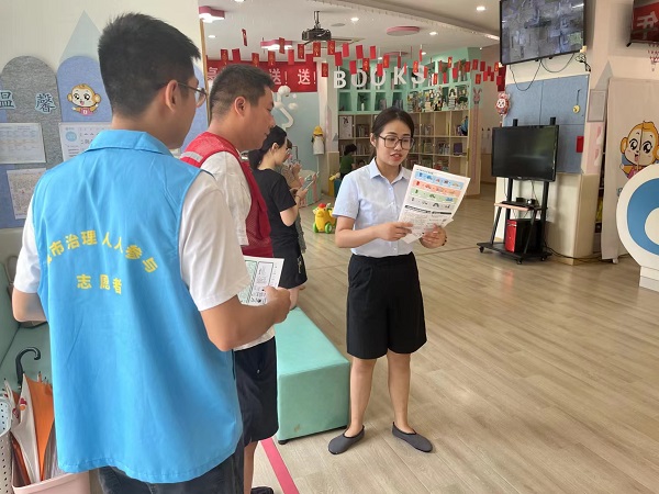 仙林湖社区工作人员走进沿街商铺开展垃圾分类主题宣传活动。通过宣传和检查相结合的方式,工作人员为商铺店员讲解垃圾分类的重要性和深远意义,号召大家共同参与,按照垃圾分类要求投放,从一点一滴做起,继而带动身边人共同参与垃圾分类活动,不断增强辖区居民垃圾分类意识。做实做细社区内的垃圾分类工作,提高辖区居民参与意识、分类意识、投放意识,建立社区垃圾分类长效管理机制。
