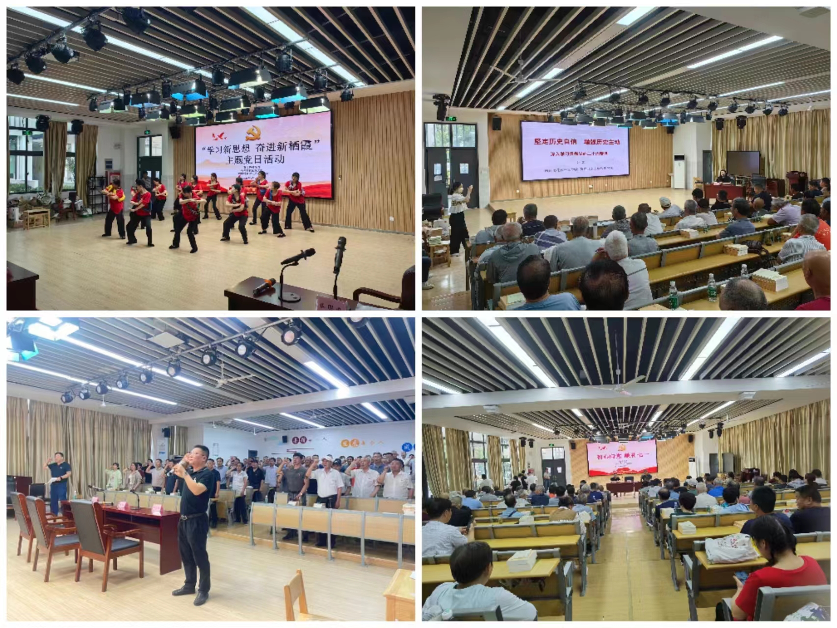近日,栖霞街道石埠桥村党委、社区党支部在石埠桥小学阶梯教室举办庆祝“七一”党员大会,同时开展“学习新思想,奋进新栖霞”主题党日活动,100余名退休党支部的老党员参加。