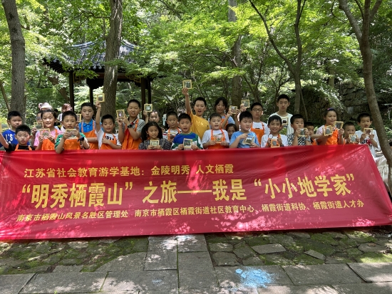 2023年7月9日上午,栖霞街道社区教育中心与栖霞山风景名胜区管理处等单位联合举办的“金陵明秀,人文栖霞”江苏省游学基地——栖霞山地质文化游学活动如期举行。