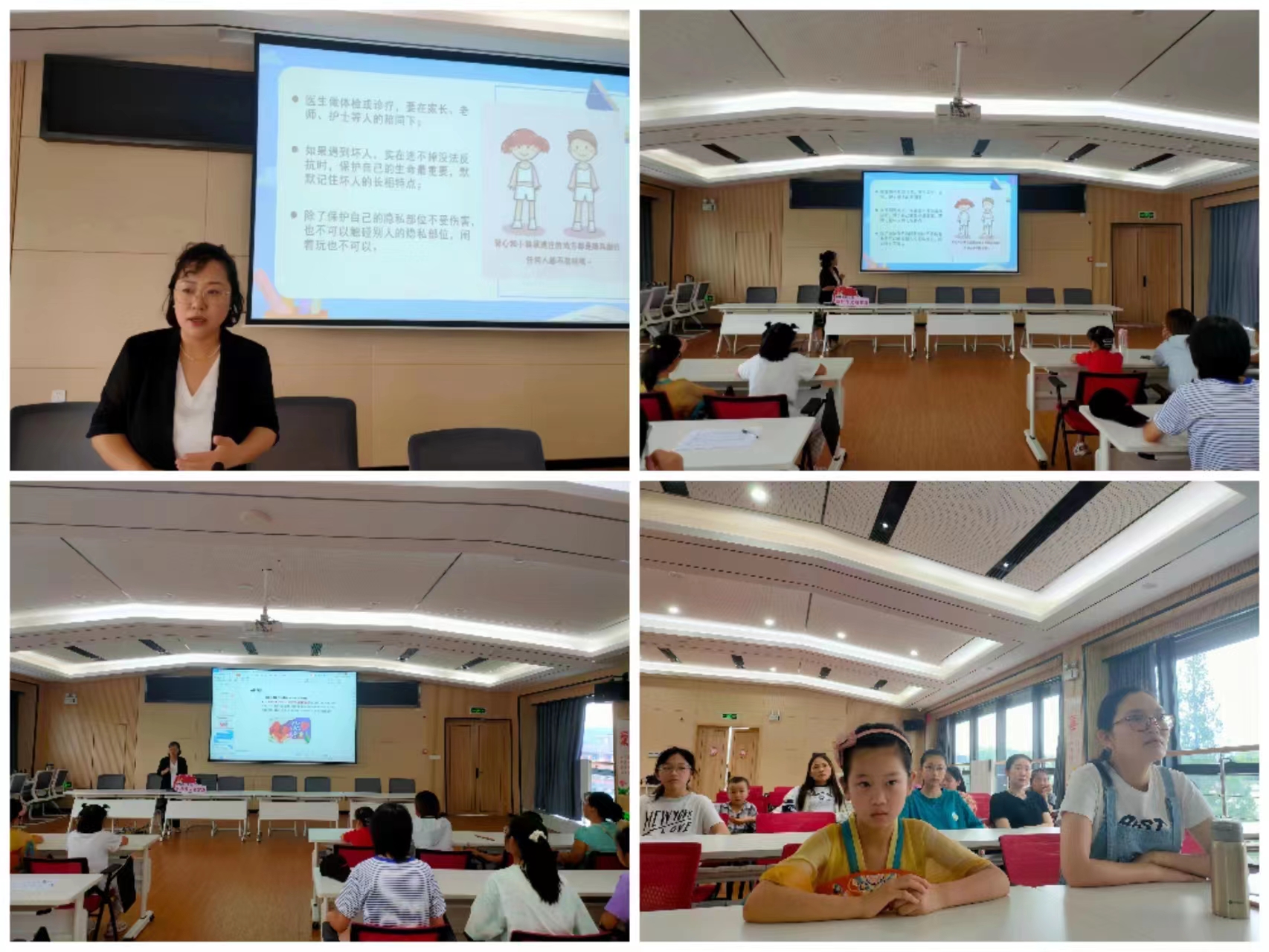 王律师以青少年身心特点和成长需求作为切入点,向孩子与家长们解读了《未成年人保护法》,就“哪里是我们身体的私密部位?哪些行为是有可能伤害我们的?哪些人是需要我们防范的?我们应该如何保护自己?万一被坏人伤害了该怎么办?”等几个方面以通俗易懂的方式,同时结合现实生活中未成年人容易遇到的侵害事件举例说明,生动地为大家介绍了保护法中关于未成年人保护及预防未成年人犯罪等各项重要内容,告知青少年们当自身合法权益受到侵害时,要充分利用家庭、学校、社会、网络、政府、司法这六大“护身宝典”保护自己。孩子们个个都听得特别认真,并且踊跃发言提出自己的问题,进一步让孩子们树立正确的法律意识,提高安全防范能力,争做知法、懂法、守法、用法的小模范。