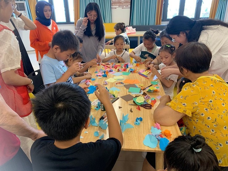 活动开始,工作人员向在场的小朋友和家长详细演示折纸花的制作步骤,强调制作过程中的注意事项,听完讲解后,孩子们都迫不及待地开始动手尝试。随后,孩子们在家长的帮助下,拿着材料进行制作,最后大家看着自己精心制作的成品,孩子们充满了成就感和幸福感。