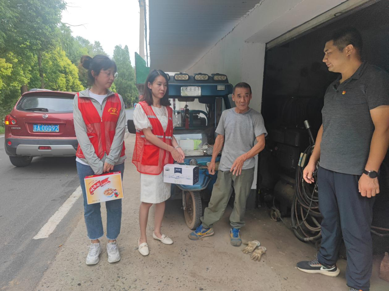 “赤日炎炎似火烧,针对持续高温,7月14日下午,新闸村开展“夏日送清凉”活动。上门看望独居孤寡老人和困难残疾人,了解了他们的身体、生活状况,并为他们带去八宝粥饮料等防暑降温物品,送上“夏日的清凉”。同时查看这些独居困难老人监控安装情况,持续关注他们身体健康。