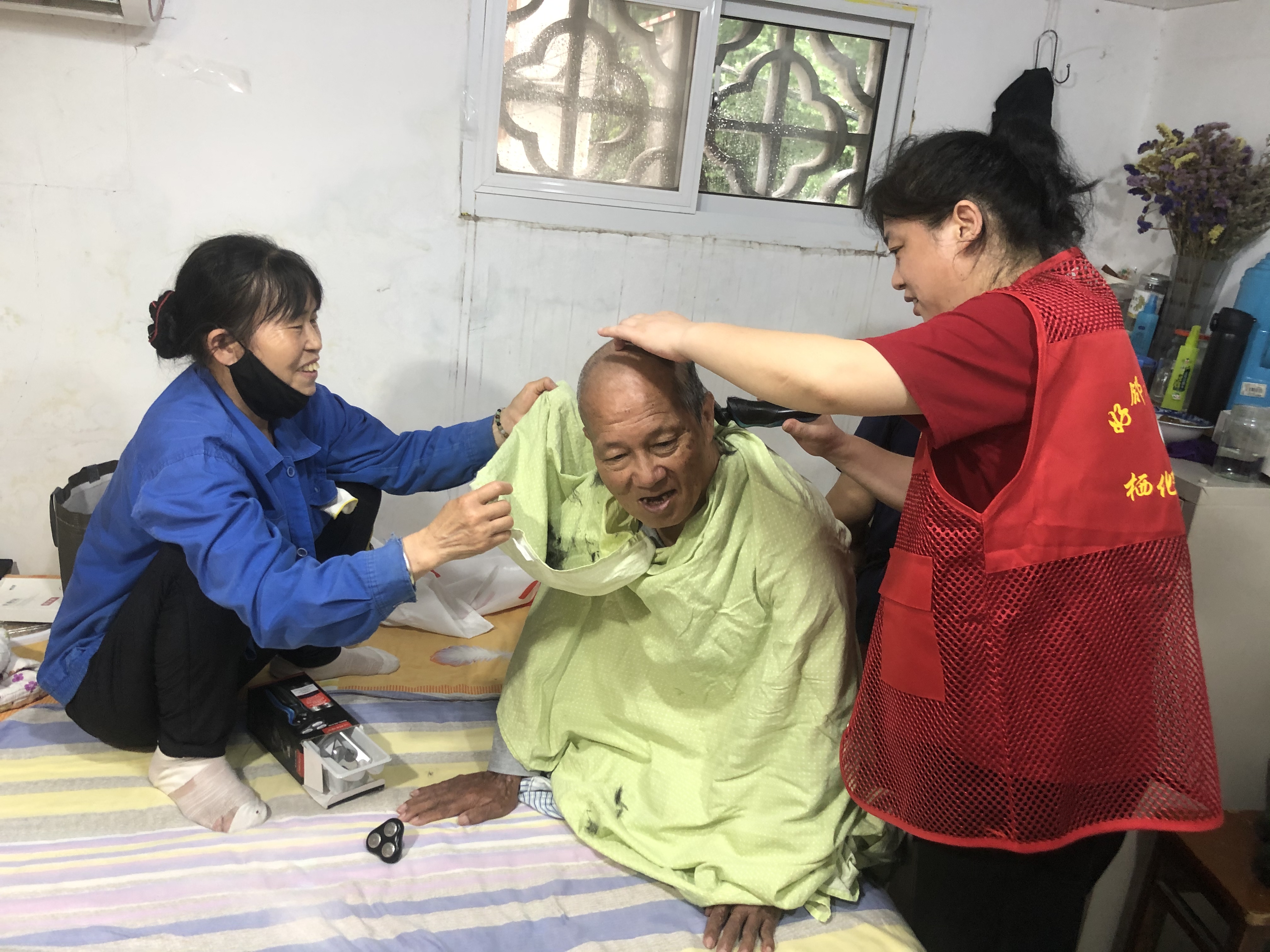 为了更好地服务社区特殊群体,进一步弘扬“敬老、爱老、扶残、助残”的传统美德,发挥好新时代文明实践志愿服务作用,7月24日,栖化新村社区居民学校联合好邻里志愿服务队开展“爱心义剪送清凉”为老助残志愿服务,免费上门为有需求的重残失能老人理发,受到社区居民的好评点赞。