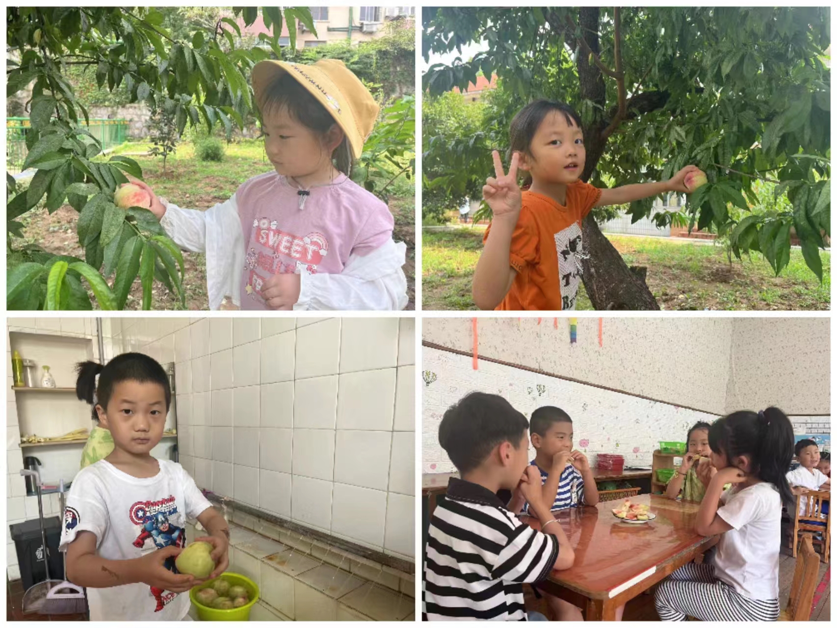 随着桃子的成熟,孩子们开展了场别开生面的品桃活动,共同体验丰收的快乐。老师带领大家一起清洗掉桃子表皮白色的绒毛,孩子们品尝了美味的桃子,香脆清甜又多汁,大家开心地表示,自己亲手摘的就是甜。