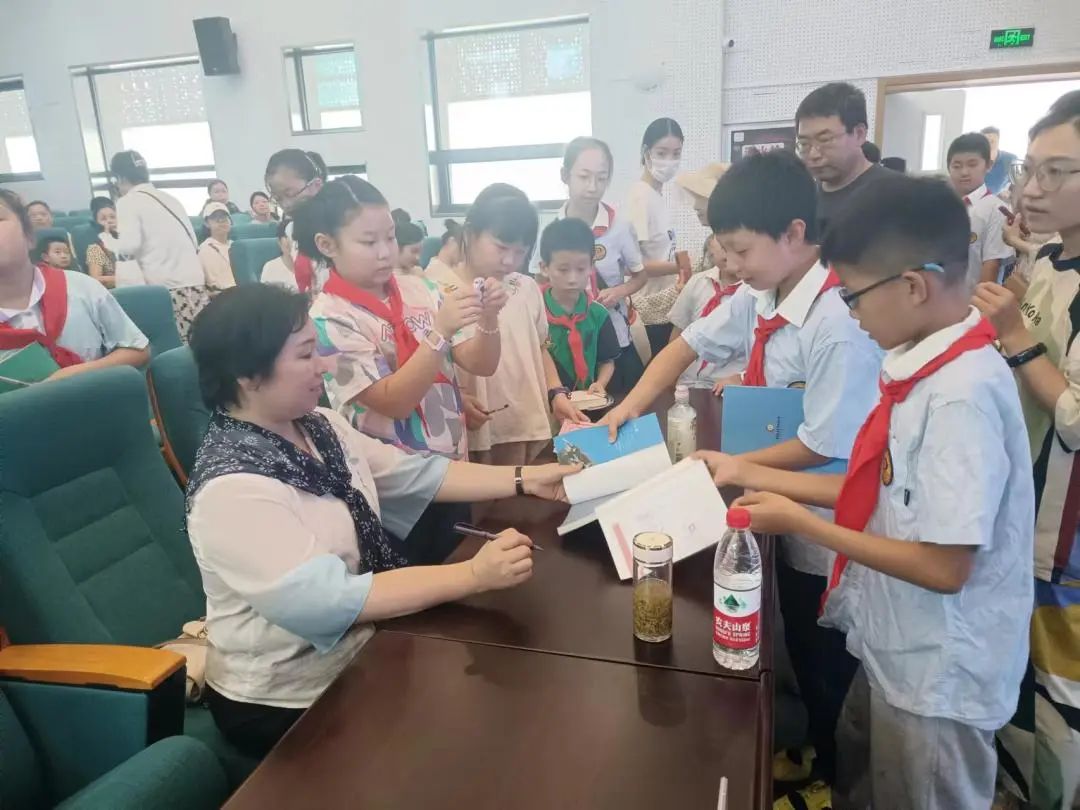 接着,苏州市作家协会副主席,苏州市职业大学教授,一级作家王一梅女士分享原创童话作品《鼹鼠的月亮河》、《木偶的森林》《合欢街》等,其中《胡萝卜先生的长胡子》入选全国统编版语文教材三年级上册。作品获第十届中宣部精神文明建设“五个一”工程奖、第五届全国优秀儿童文学奖和第六届全国优秀儿童文学奖、第五届国家图书奖等奖项。活动中,王教授把阅读中学习做了重点阐述,告诉孩子们文学是语言的艺术,善于在阅读中发现优美的语言,通过充满想象力的文字,感受文学的魅力,鼓励孩子们爱阅读、爱文学、爱写作、爱思考,用文化浸润大脑。同时邀请热心的小读者上台互动,王教授还为小读者们签名,孩子们纷纷排队、合影,现场好不热闹。