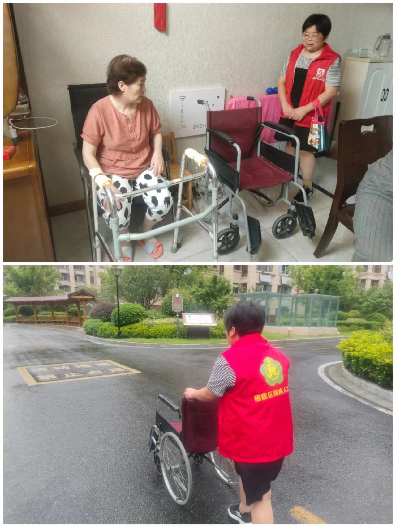 近日,栖霞街道石埠桥村社区残疾人之家为辖区受伤老人送去“爱心轮椅”,帮助其解决出行问题。