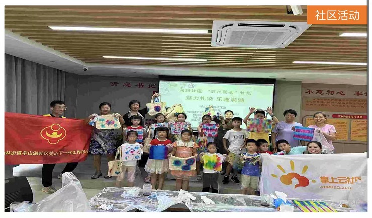 仙林街道羊山湖社区于8月10日上午开展了“魅力扎染,乐趣满满”主题活动,旨在通过扎染艺术培养提高孩子们对传统文化的认识和兴趣,营造温馨且具有人文关怀的社区文化。
