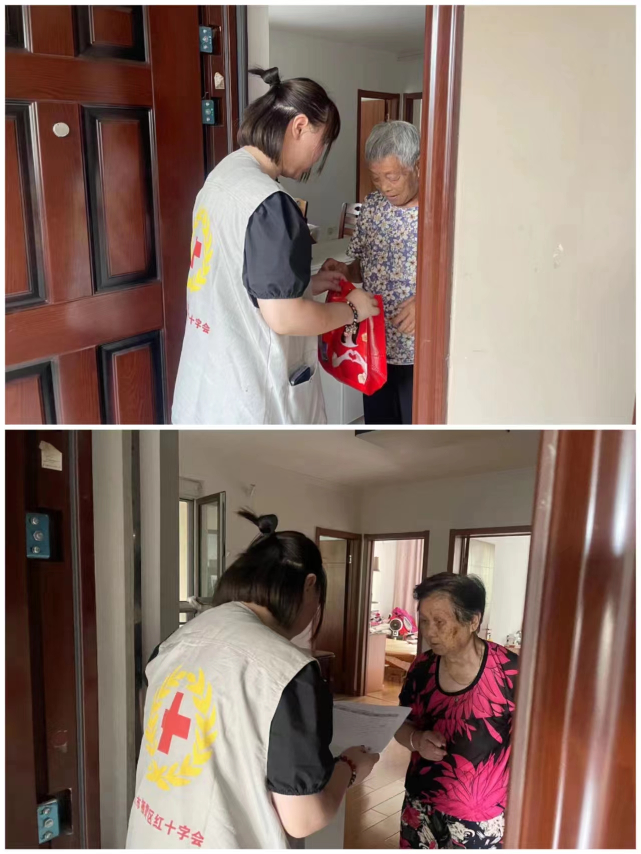 活动当天,社区红十字志愿者们一起来到辖区80岁以上高龄老人、残疾老人家中,给他们送上清凉油、藿香正气水、花露水等夏季清凉物品。同时与他们面对面交谈,详细询问他们近期的身体情况和生活状况,耐心倾听他们的真实心声与诉求,同时叮嘱他们注意防暑,确保身体健康。