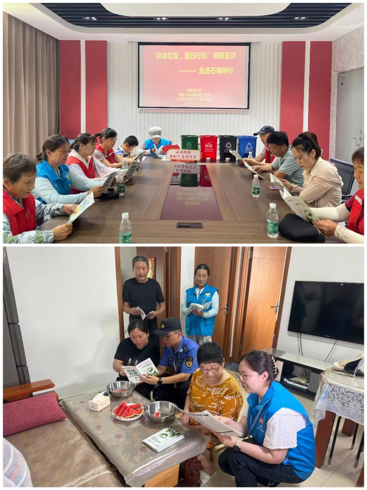 活动中,石埠桥村社区城市治理委员会志愿者们通过简单明了接地气的宣传话语,向社区居民宣传解析生活垃圾分类的重要性和相关知识,讲解生活垃圾分类简单易操的做法。石埠桥村社区文明实践站志愿者前往居民楼家中,向社区居民发放有关《垃圾分类》宣传小册子资料,让居民在日常生活中熟悉生活垃圾分类的要求,将绿色环保理念融入日常生活之中,养成文明健康的生活方式。