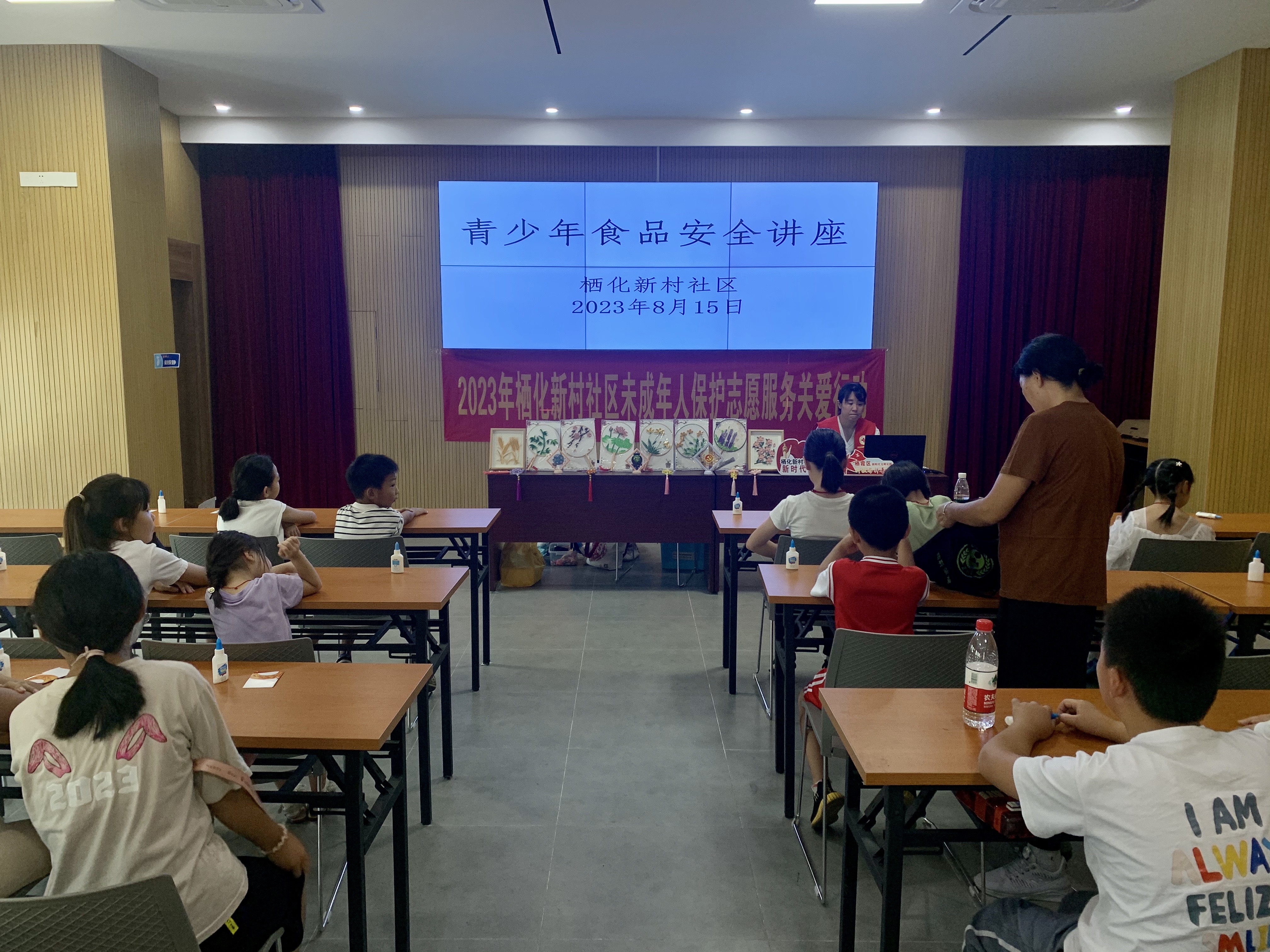 为关爱辖区青少年,提高他们的食品安全意识,培养健康的饮食习惯。8月15日,栖化新村社区召开青少年食品安全讲座。