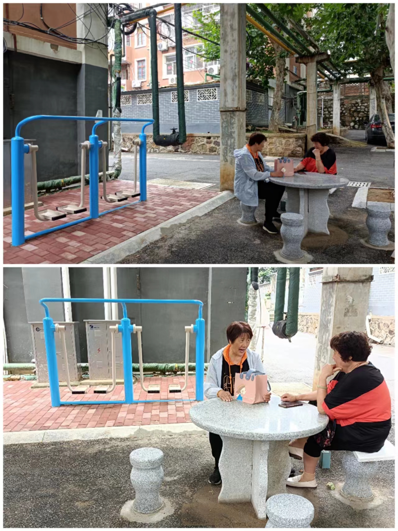 栖化新村社区的普遍人口多为老年群体,社区根据此年龄结构特点,进行走访调查,发挥协商效能,结合广大民意,故拟定于“单身楼北边停车场外围”和“42栋南边小公园内部”安装休闲座椅,“14栋东边”和“22栋北边操场”新增健身器材和石桌石凳。