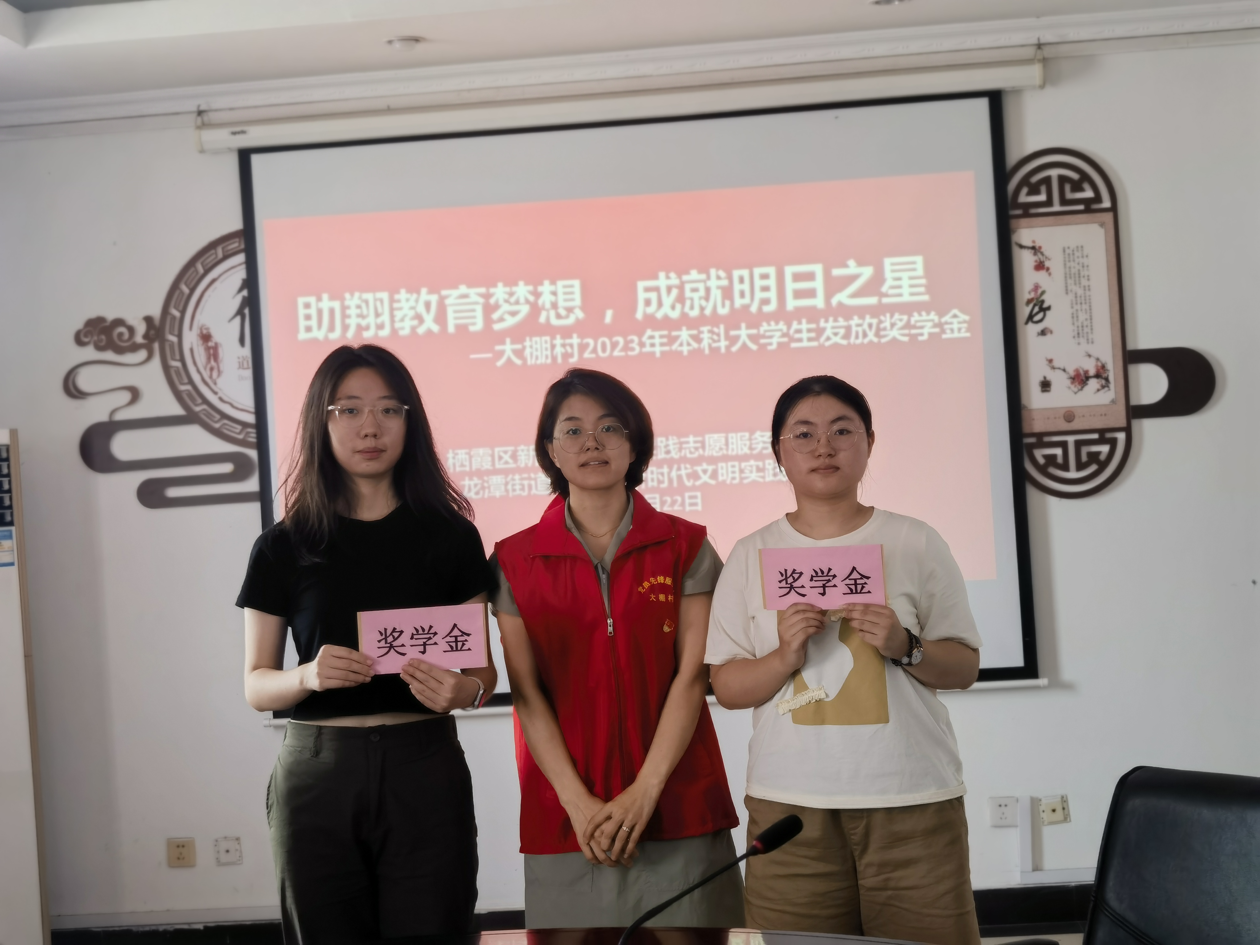 最后,由大棚村党委组织开展“助翔教育梦想,成就明日之星”—大棚村2023年本科大学生发放奖学金环节,大棚村党委副书记为辖区内今年考上本科的大学生颁发奖学金,对学子们取得优异成绩表示了祝贺,鼓励他们进入大学之后积极进取,不负韶华,在不断丰富自身的同时回馈社会、回报家乡。大学生代表甘海婷作出发言,她表示主动学习是提高能力水平,拓宽视野的必经之路,自己将奋力未来,逐步提升,用自己微小的力量点亮璀璨的人生。
