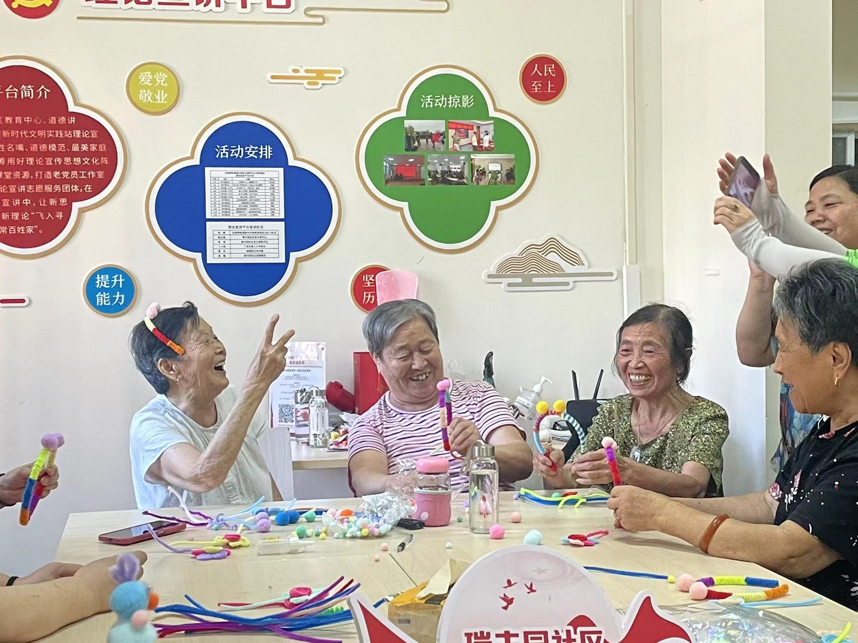 随后,学生志愿者们通过指导老人们制作扭扭棒蘑菇发箍,与老人们一对一交流,一边做手工,一边为老人解答生活中遇到的养生问题。现场气氛活跃,热闹非凡,陈阿姨兴奋地说:“以前只知道白露和农事有关,没想到还有这么多养生知识,听了今天这门课,可算知道秋季怎么养生了。”