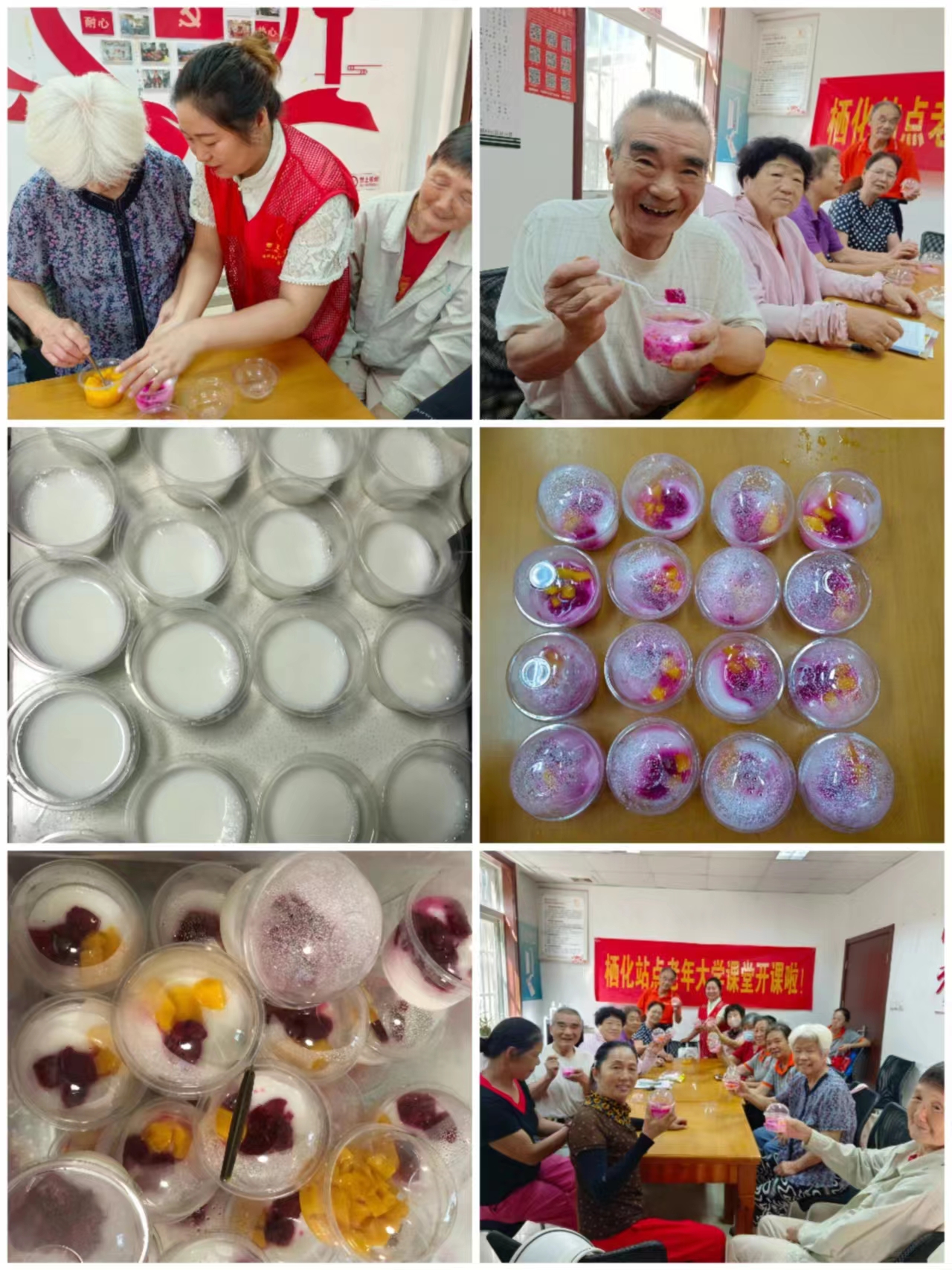 为了更好的丰富辖区居民朋友们的兴趣爱好,促进老年居民的沟通交流,进一步提升老年群体的业余文化生活和精神生活,9月1日下午,栖化新村社区新时代文明实践站联合爱德仁谷社会组织及社区居民学校开展老年大学美食课程,邀请辖区老人通过手工体验自制双皮奶的方式,为居民科普健康饮食知识,弘扬文明餐饮新风尚。