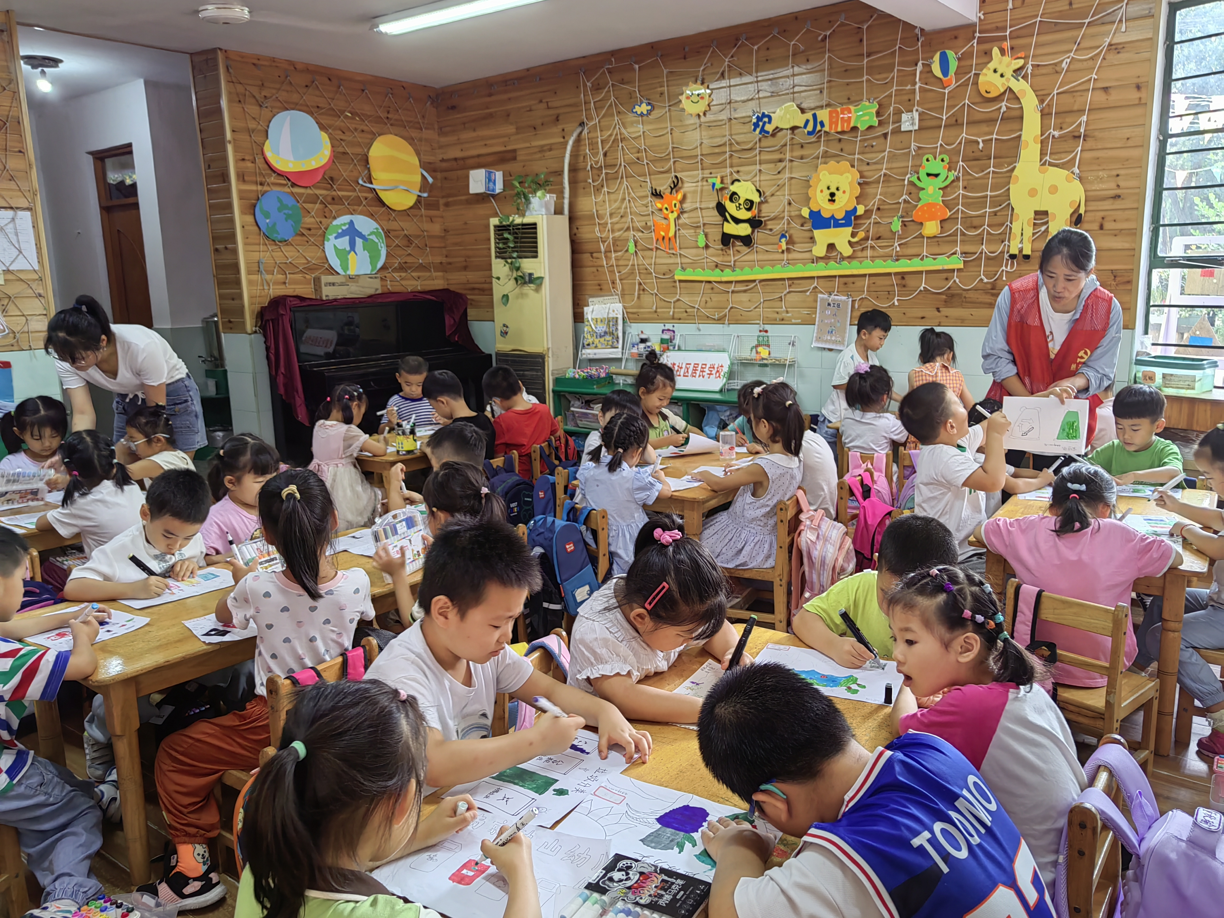 首先社区居民学校老师和志愿者耐心地孩子们绘画基础知识,如线条、色彩运用和构图等方面的技巧;然后带领他们参观展览,不仅仅是简单地展示画作,而是通过详细解读每张画作背后的主题和寓意,让孩子们深入了解艺术作品的内涵,以生动的方式向他们讲解,让他们对绘画产生浓厚的兴趣。孩子们都跃跃欲试,专心创作。最后评出优秀作品,获奖孩子家长发言,一起鼓励孩子们再接再厉。