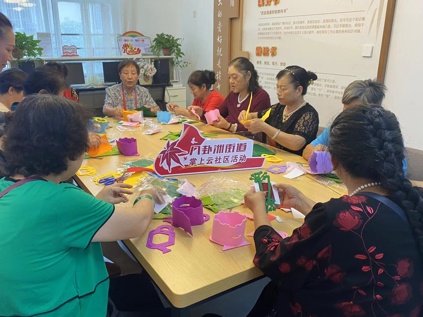 在制作过程中,阿姨们相互帮助、相互提出建议,脸上洋溢着孩子般的笑容,在相互分享中不时还被奇形怪状的花朵逗笑,大家都乐在其中,享受制作过程。经常参加党群活动的张阿姨说到:“这个做出来还挺好看的,既锻炼了手又锻炼了脑,真不错!”张阿姨旁边的李阿姨也附和道:“后面还有活动我们还要多多参加。”看着自己亲手制作的作品,大家兴奋不已,纷纷拿着自己的手工花相互比较、交流经验,脸上满是喜悦和成就感。其中几位心灵手巧的阿姨制作出精致漂亮的手工花,获得大家的一致点赞。