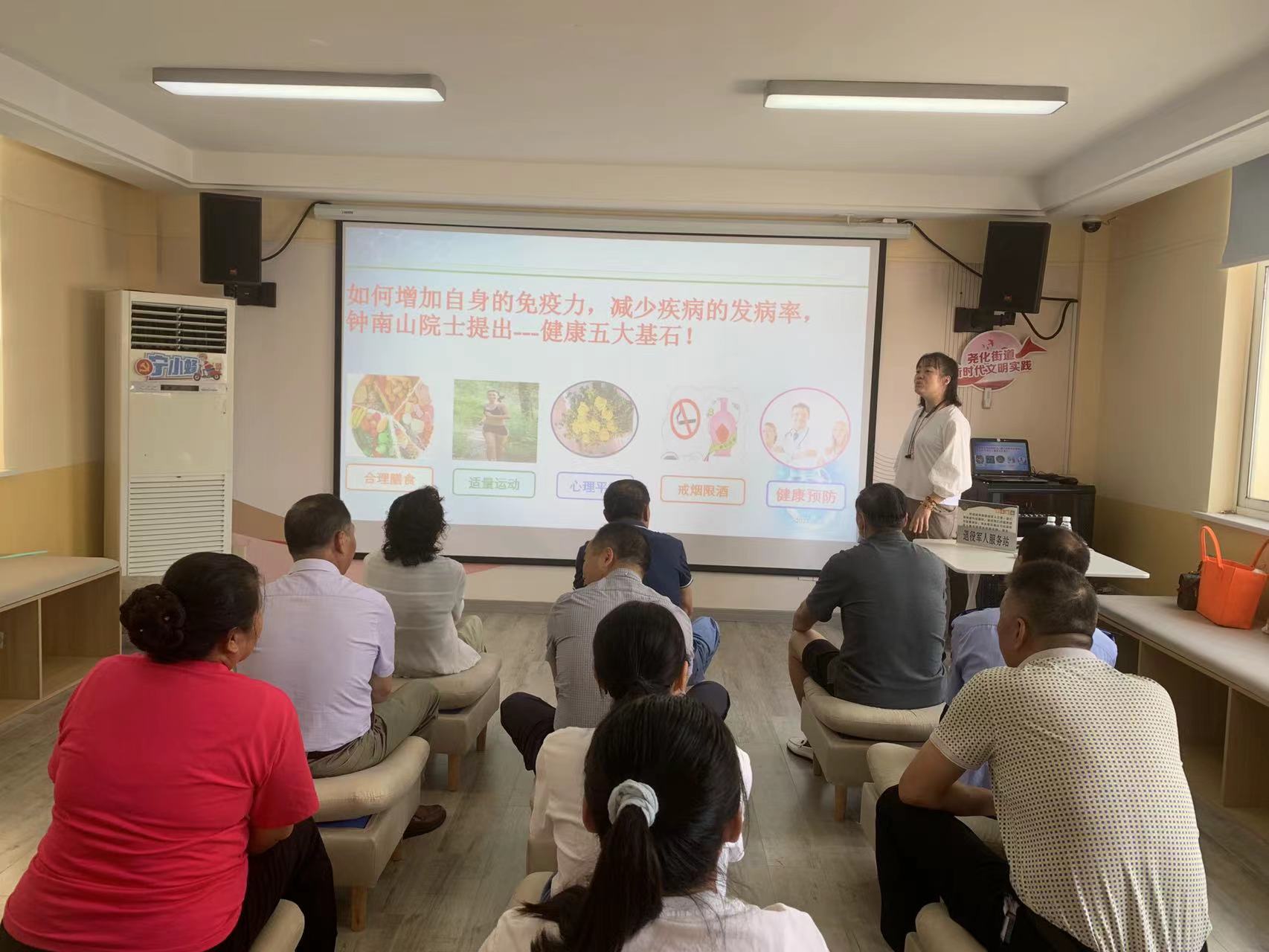 此次活动通过“掌上云社区”平台共招募了退役军人50人参与,活动现场,医生用通俗易懂的语言为退役老兵们介绍了常见的肺癌发生原因、临床症状、致病因素,以及癌症发展各阶段的不同治疗手段。向退役老兵们科普,“癌症并不可怕,癌症是可防可治的。发现越早,治疗效果越好!”“平时多运动,注意饮食健康和良好的生活习惯……”随后,医生细致地为大家讲解健康的生活方式、合理的饮食、适量运动以及定期体检等肿瘤防治知识。活动中,医生现场指导老兵们如何通过最简单的方法进行简单的身体机能检测,及时了解自己的身体健康状况等。最后,志愿者还为大家发放体检项目宣传单、异地就医、医疗保险宣传单页,解答有关就医、体检政策方面的问题。会后,尧化新村社区还通过“掌上云”社区向退役军人推送了此次活动健康知识的相关信息,方便退役军人们在家中进行学习。