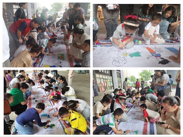 在志愿者老师的指导下,孩子们描图、修整、上色……大家分工合作、齐心协力,绘画过程中,孩子们纷纷展开了丰富的想象,发挥了绚丽的色彩搭配能力,一旁的家长也积极地参与其中。在一片和谐热闹的氛围中肆意挥洒笔下的色彩,将洁白的画布渲染成色彩斑斓的画卷,刻画出一支攻坚克难、勇于担当的普查队伍,展现社区普查员入户宣传,耐心细致为辖区个体户、法人单位、产业活动单位解读经济普查的生动画面。画卷完成后,周围的居民啧啧称赞,孩子们用自己独特的方式助推普查工作家喻户晓、深入人心。