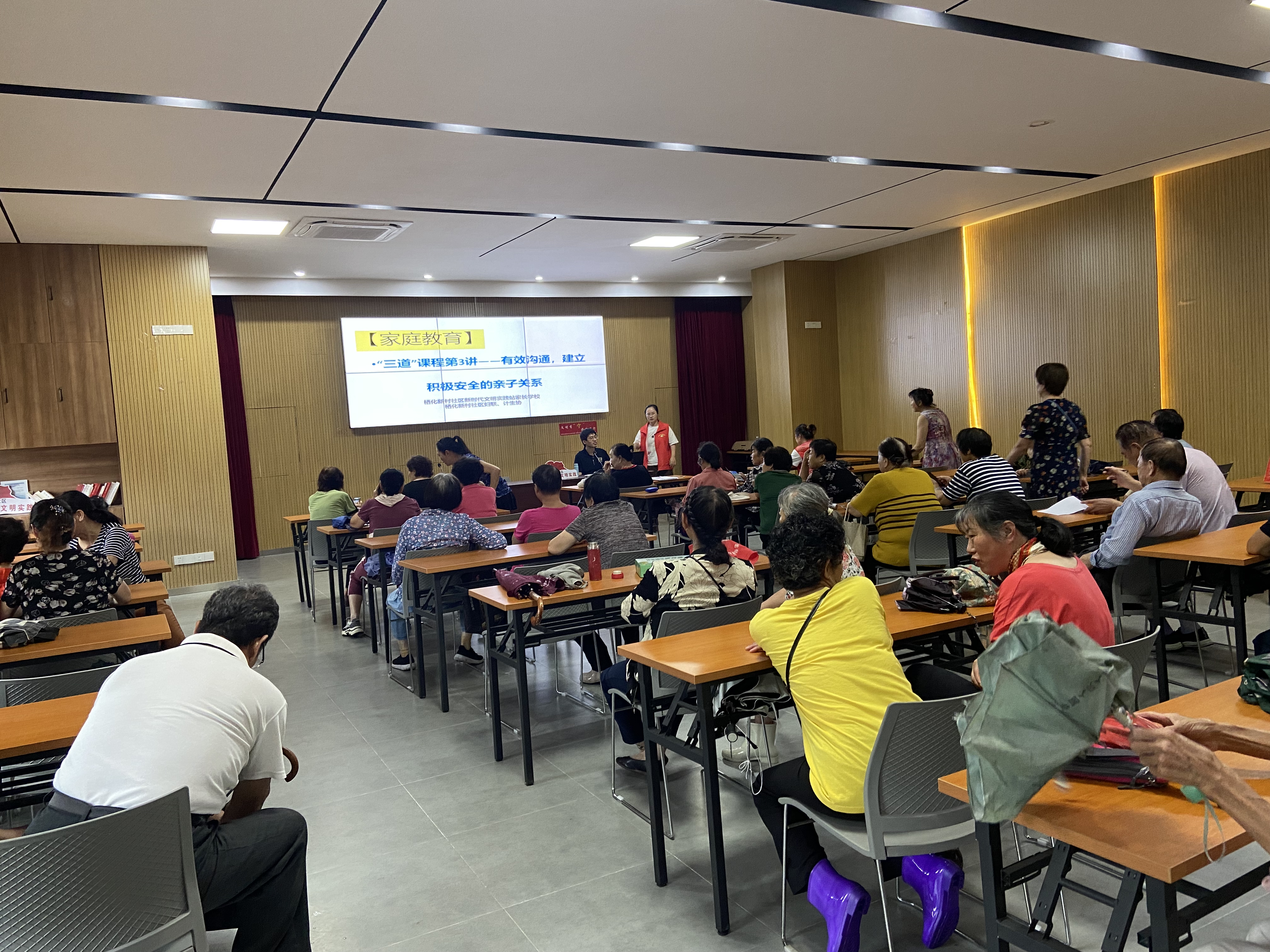 活动现场视频播放“三道”课程第3讲《好好爱,慢慢说——有效沟通,建立积极安全的亲子关系》,带领居民家长了解亲子关系是家庭建设非常重要的话题,大家一起学习亲子沟通的正确打开方式,学会无条件地爱孩子,并努力成为最好的自己,耐心帮助、等待孩子自然成长,做孩子信赖依恋的父母。