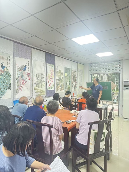 本期书画班于每周二上午定期开课,由经验丰富的书画教师授课,课程内容涵盖基础笔画练习、山水花鸟创作及书法技巧等,旨在通过系统教学丰富社区老年人的精神文化生活,提升书画艺术修养。