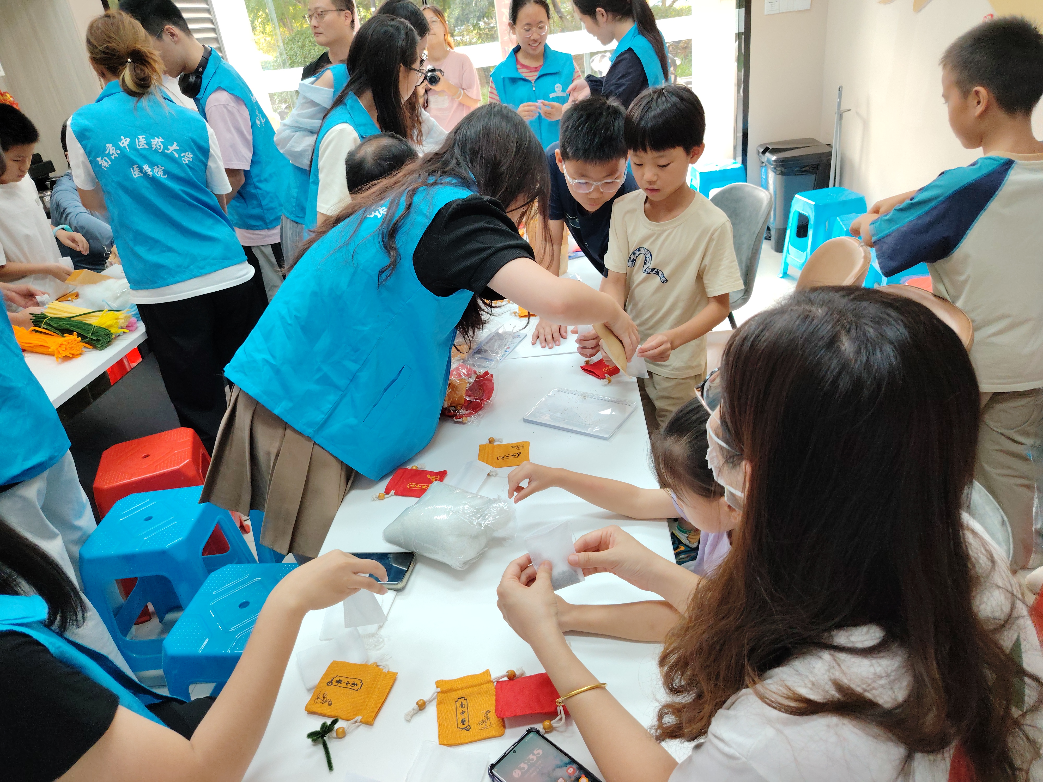 活动伊始,志愿者老师进行中医药文化小讲座,以知识大闯关形式,让少年组与成人组趣味 PK,在竞争中感受中医药魅力;紧接着参与了中药香囊 DIY 环节,根据提供的具有驱蚊、安神等不同功效的药方,亲手挑选、研磨、装填,制作出一个个独具特色且实用美观的中药香囊。孩子们兴致盎然,家长们也乐在其中,大家在实践中体会到中医药与日常生活的紧密联系。